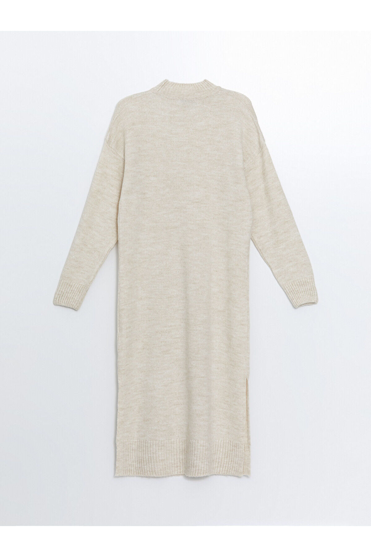 Düz uzun kollu elbise, triko kumaştan üretilmiştir.