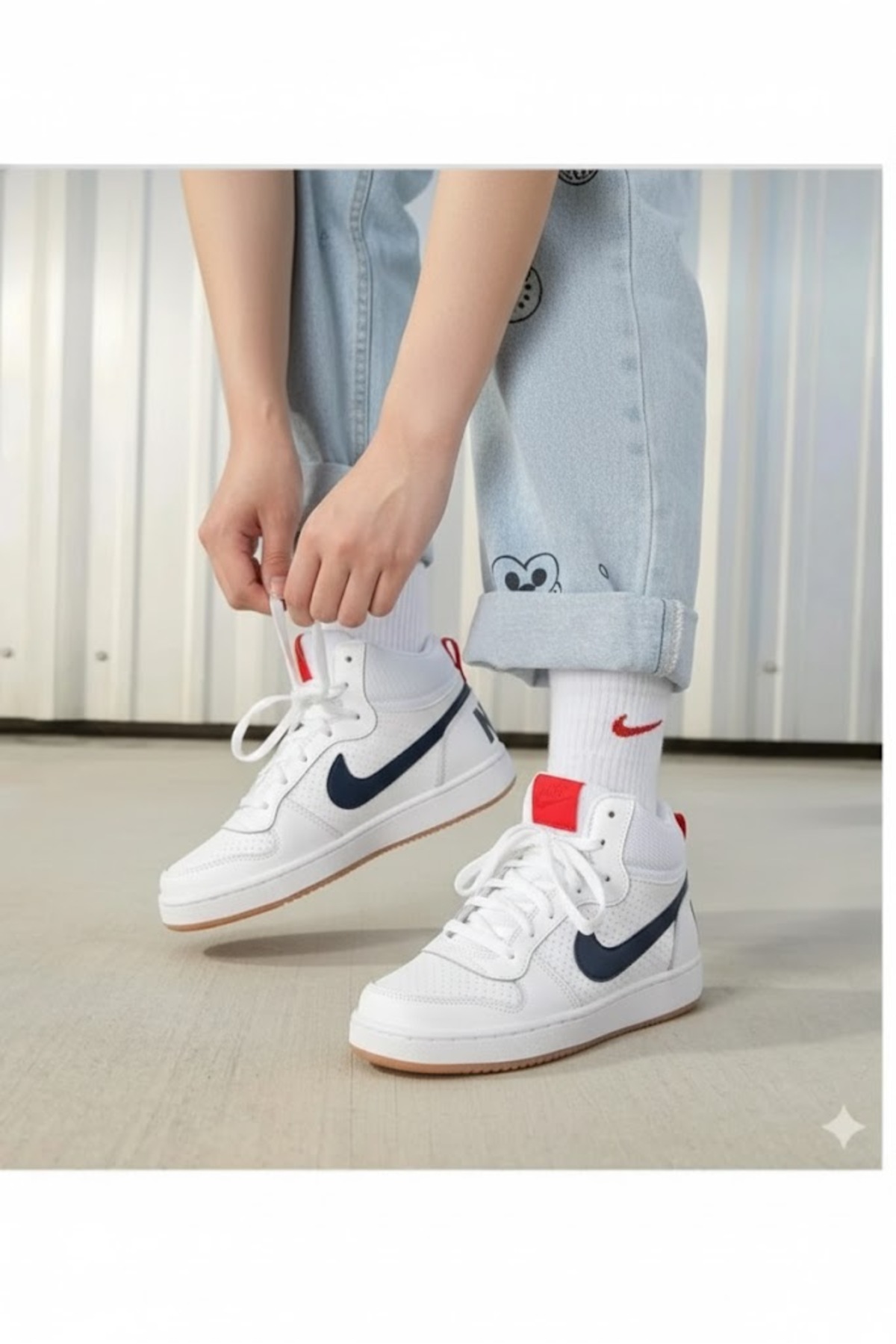 Logolu tasarımı ile dikkat çeken Court Borough Mid (GS) bilekli spor ayakkabı, günlük kullanım için ideal bir seçimdir