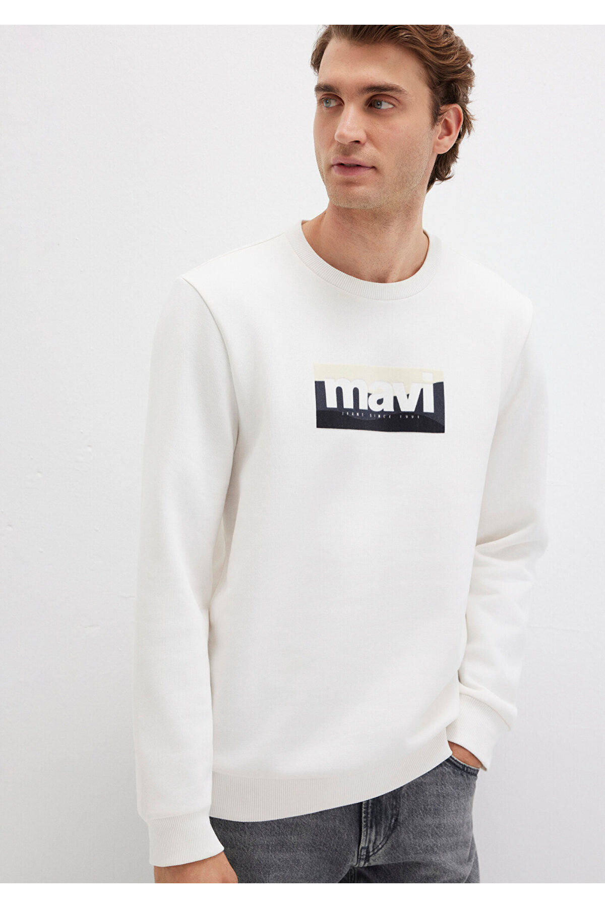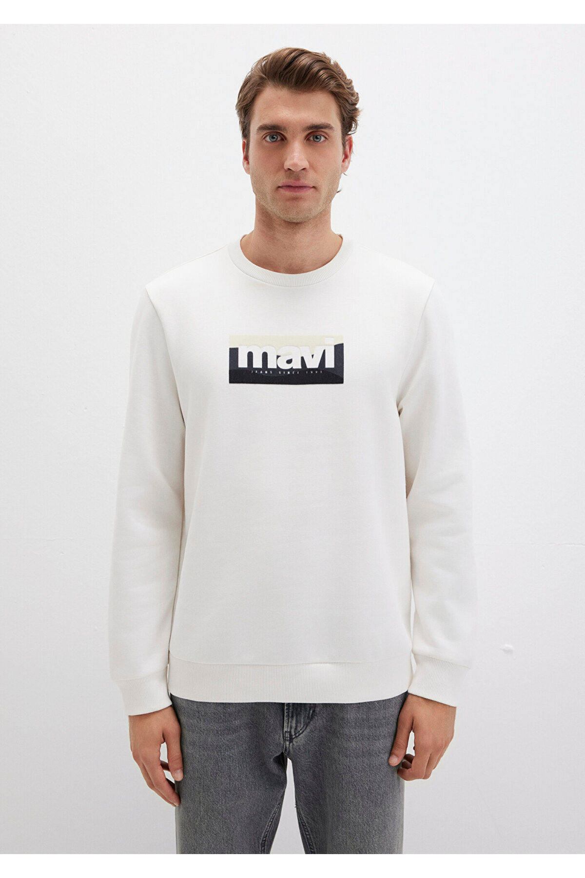 Mavi nin erkek koleksiyonundan Mavi Logo Baskılı Ekru Sweatshirt.