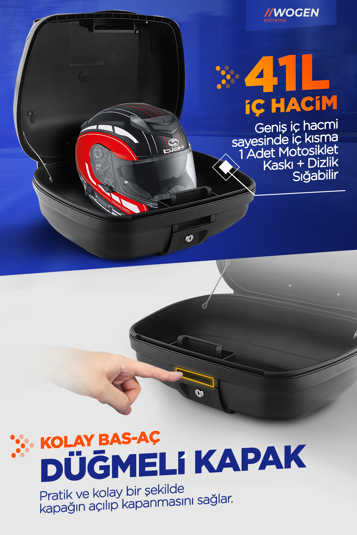 MOTOSİKLET ARKA ÇANTA KARGO TİPİ 41 LİTRE SİYAH (BASIC) WOGEN