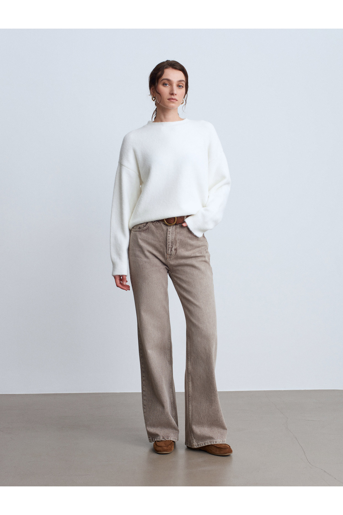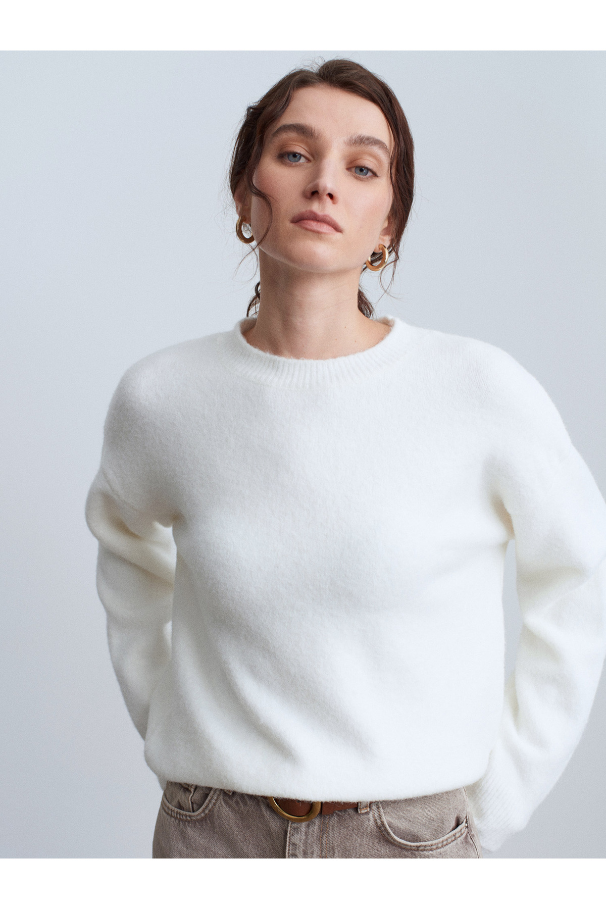 10640 Bisiklet Yaka Yumuşak Dokulu Triko Kazak-Ekru