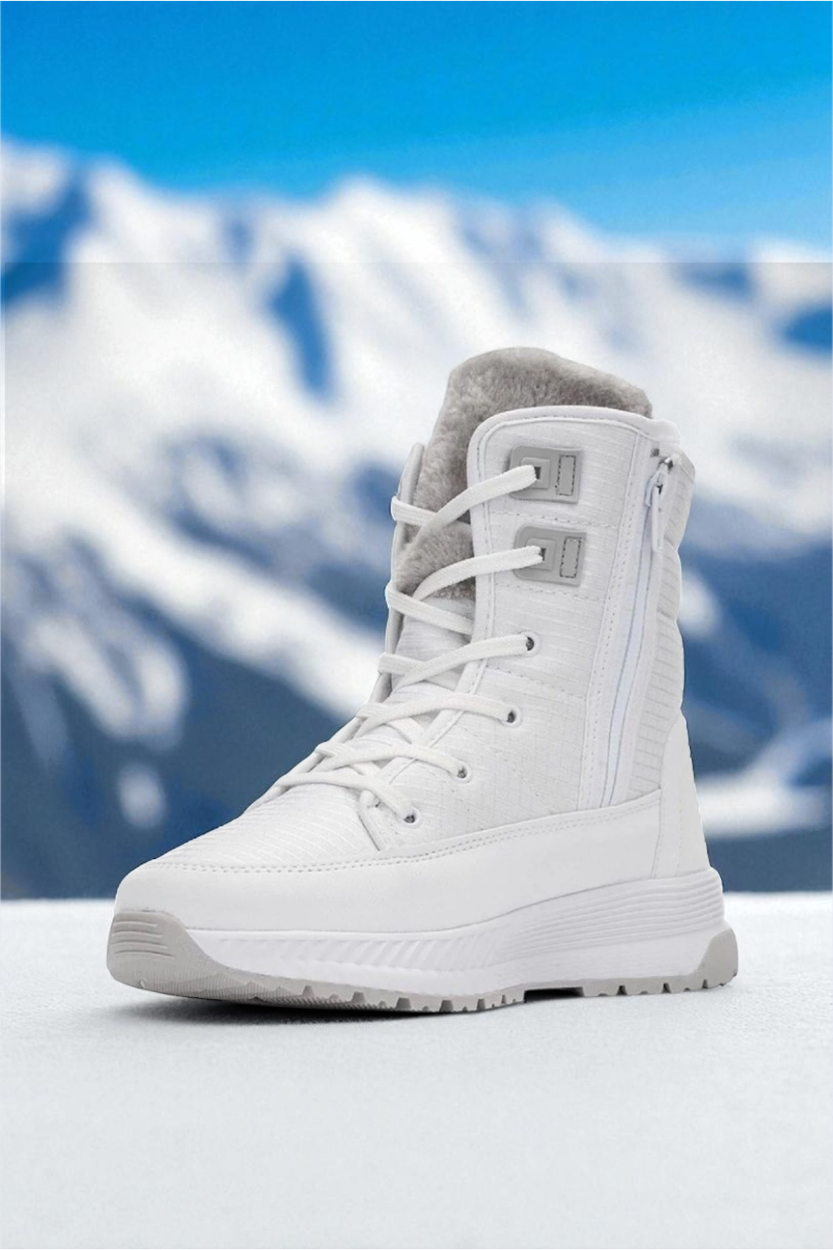 Kadın - Kız - Unisex Kışlık Kürklü Fermuarlı Anatomik Taban Kışlık Bot - Beyaz( KIŞLIK TERLİK HEDİYE