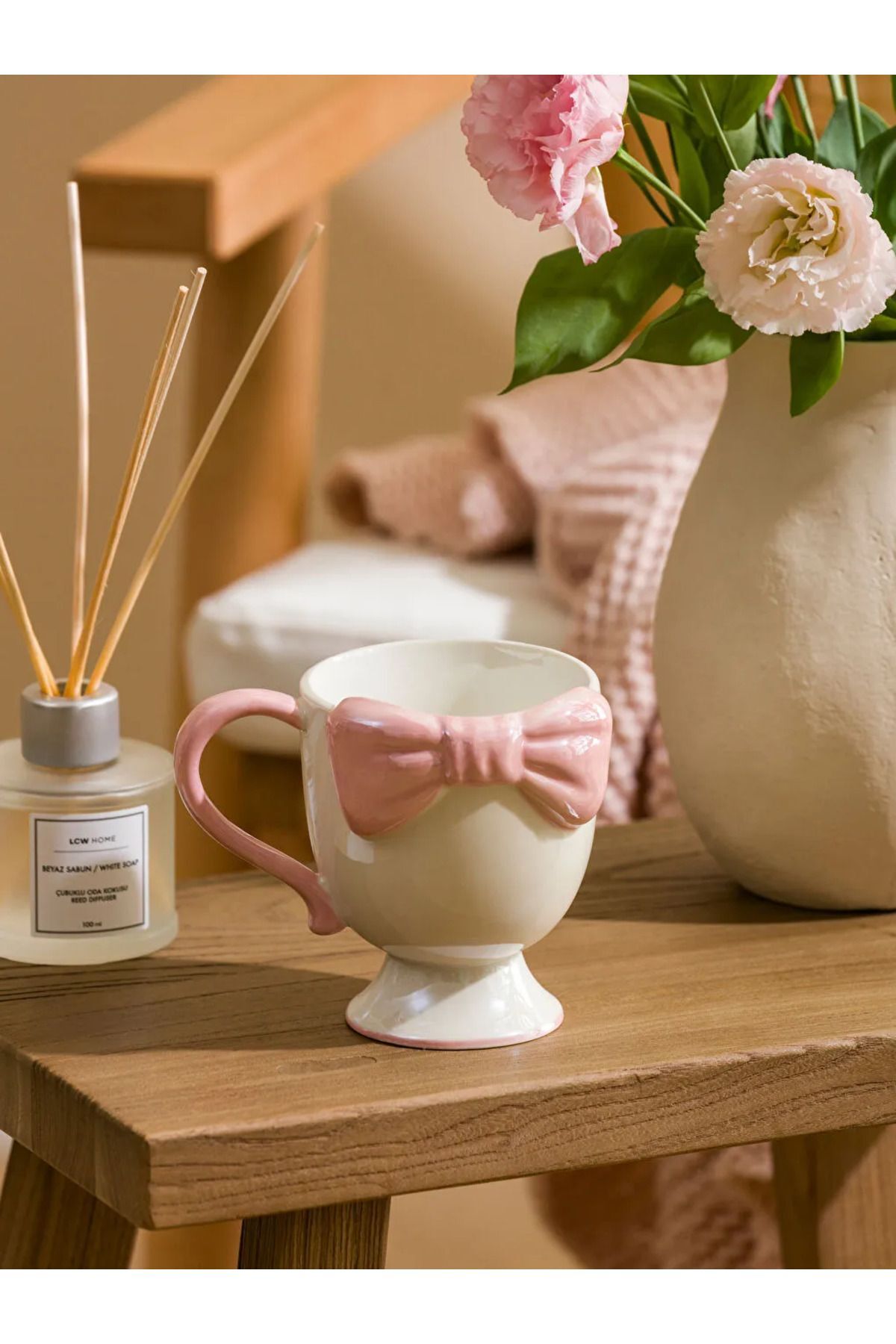 LCW HOME Beyaz Fiyonk Desenli Seramik Kupa 300 Ml