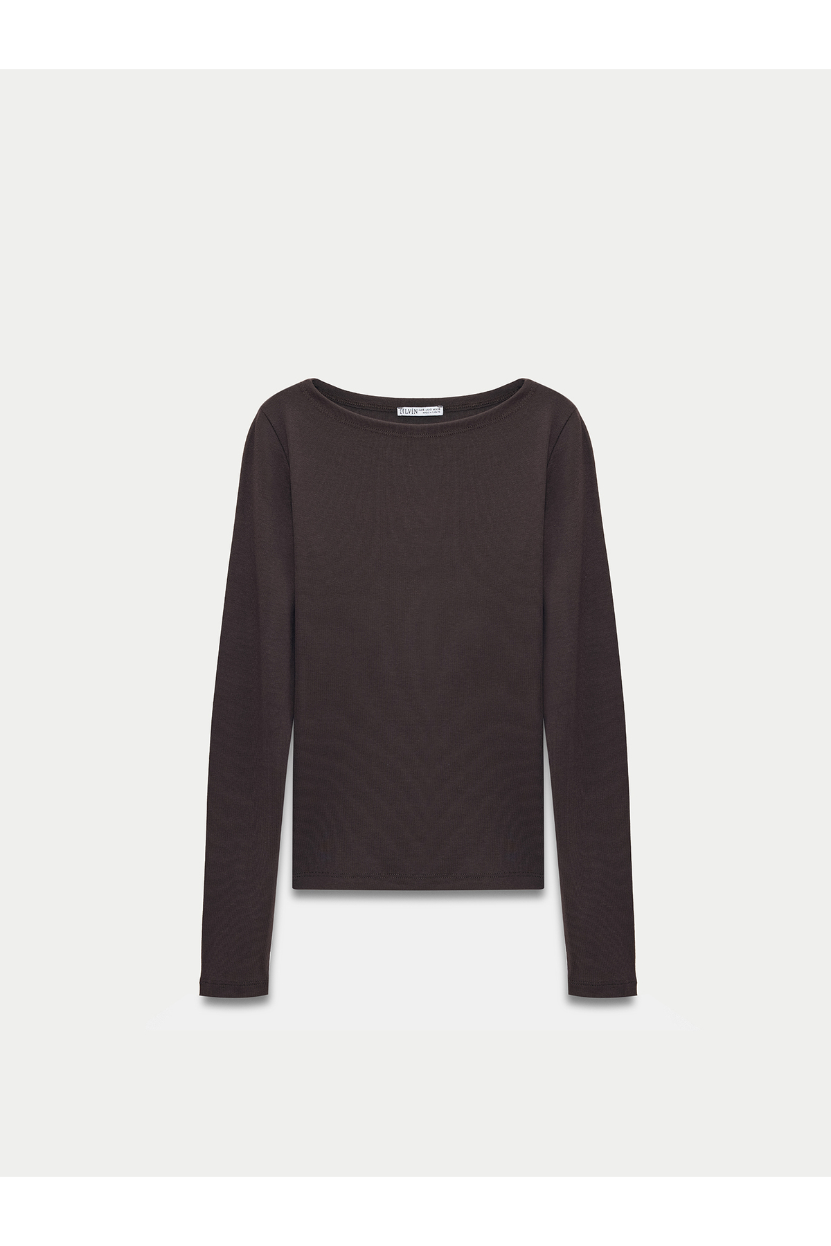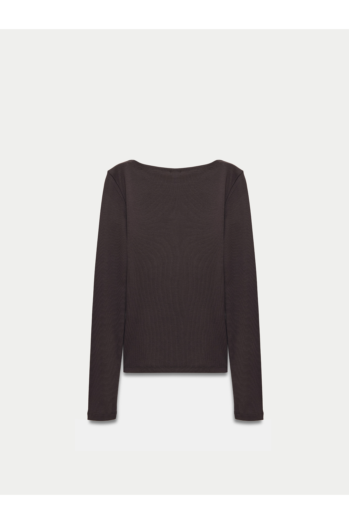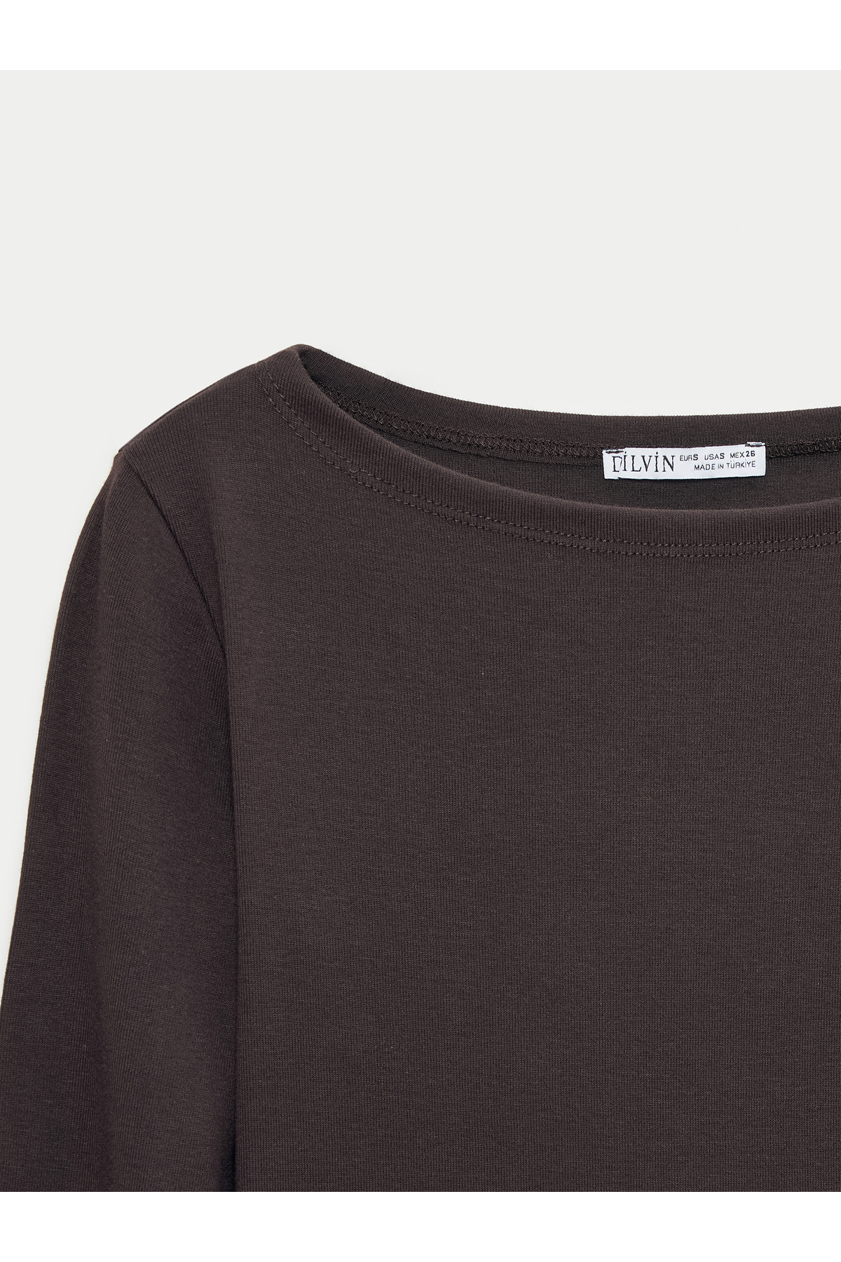 31332 Kayık Yaka Uzun Kollu Top-Koyu Kahve