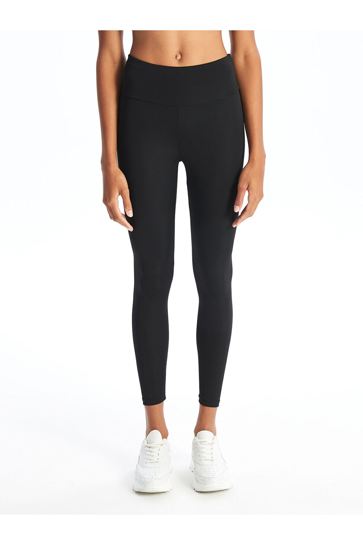 XSIDE ACTIVE Siyah Kadın Beli Lastikli Ekstra Dar Fit Düz Tayt