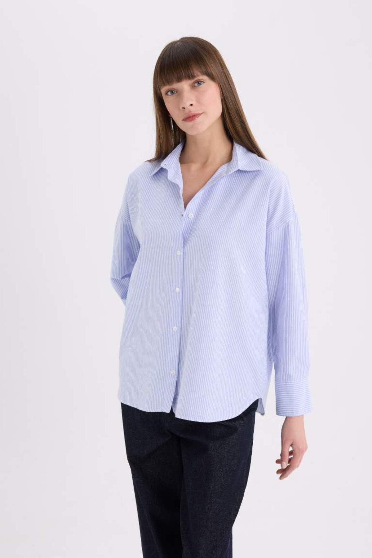 Ürün Kodu: D4512AXBE571 Modelin Ölçüleri S Beden - 1,78cm - 85/60/89 Numune Bedeni: S Ana Kumaş İçeriği: : Pamuk 63%,Poliester 37% Ürün Grubu: : Kadın Gömlek Cinsiyet : Kadın Paça Detay : Düz Paça Kumaş : Oxford Ürün Tipi : Uzun Kollu Gömlek Kalıp : Oversize Geniş Kalıp Renk : Mavi Yaka : Gömlek Yaka Desen : Çizgili Kol Boyu : Uzun Kollu Ürün Uzunluk Ölçüleri : Omuzdan Arka Boy: S-72 cm, Omuzdan Arka Boy: M-73 cm, Omuzdan Arka Boy: L-74 cm, Omuzdan Arka Boy: Xl-75 cm, Omuzdan Arka Boy: Xxl-76 cm