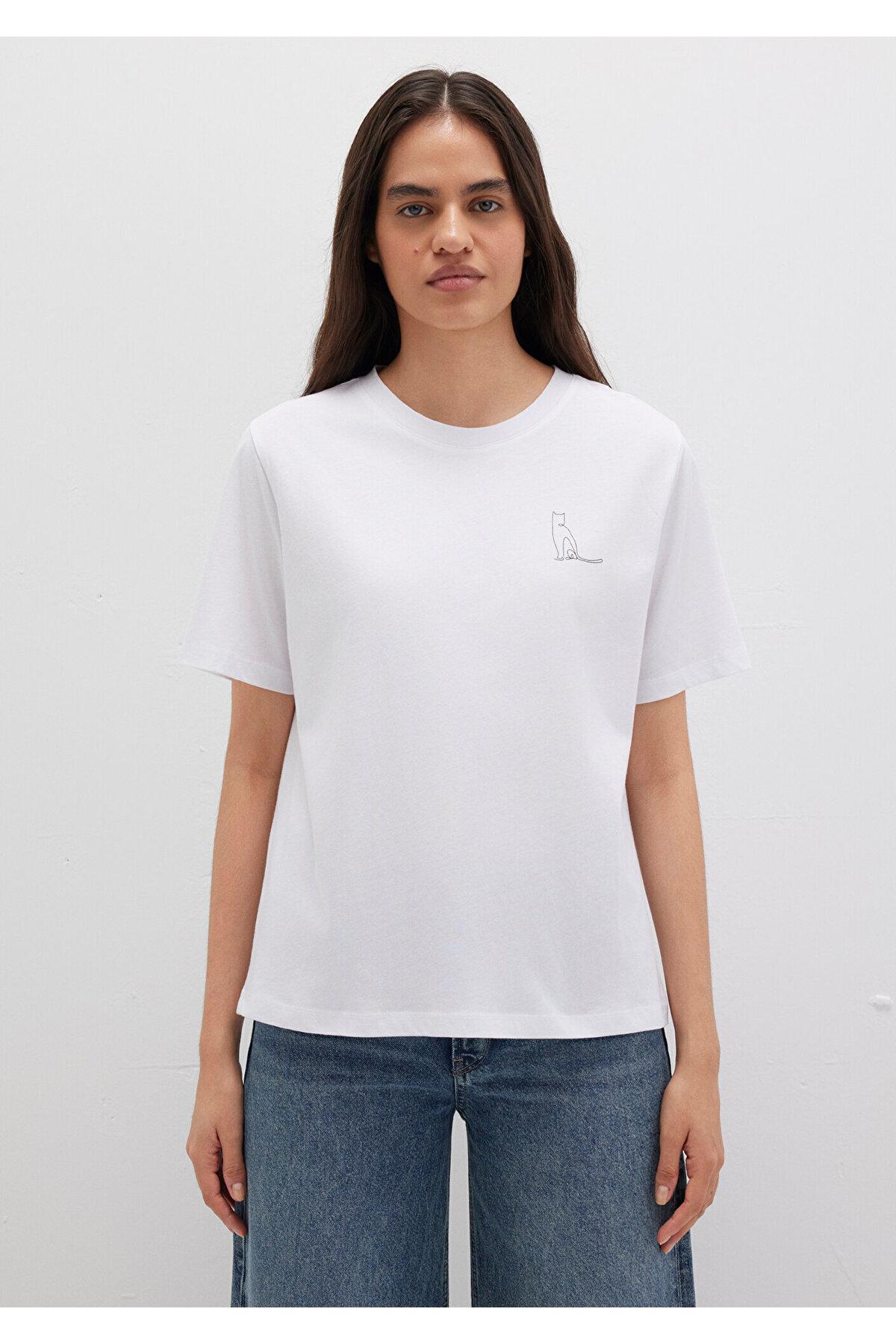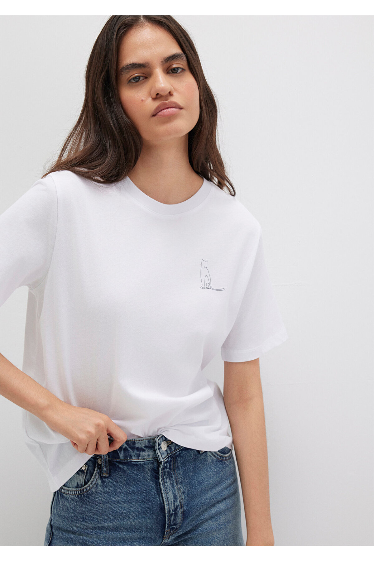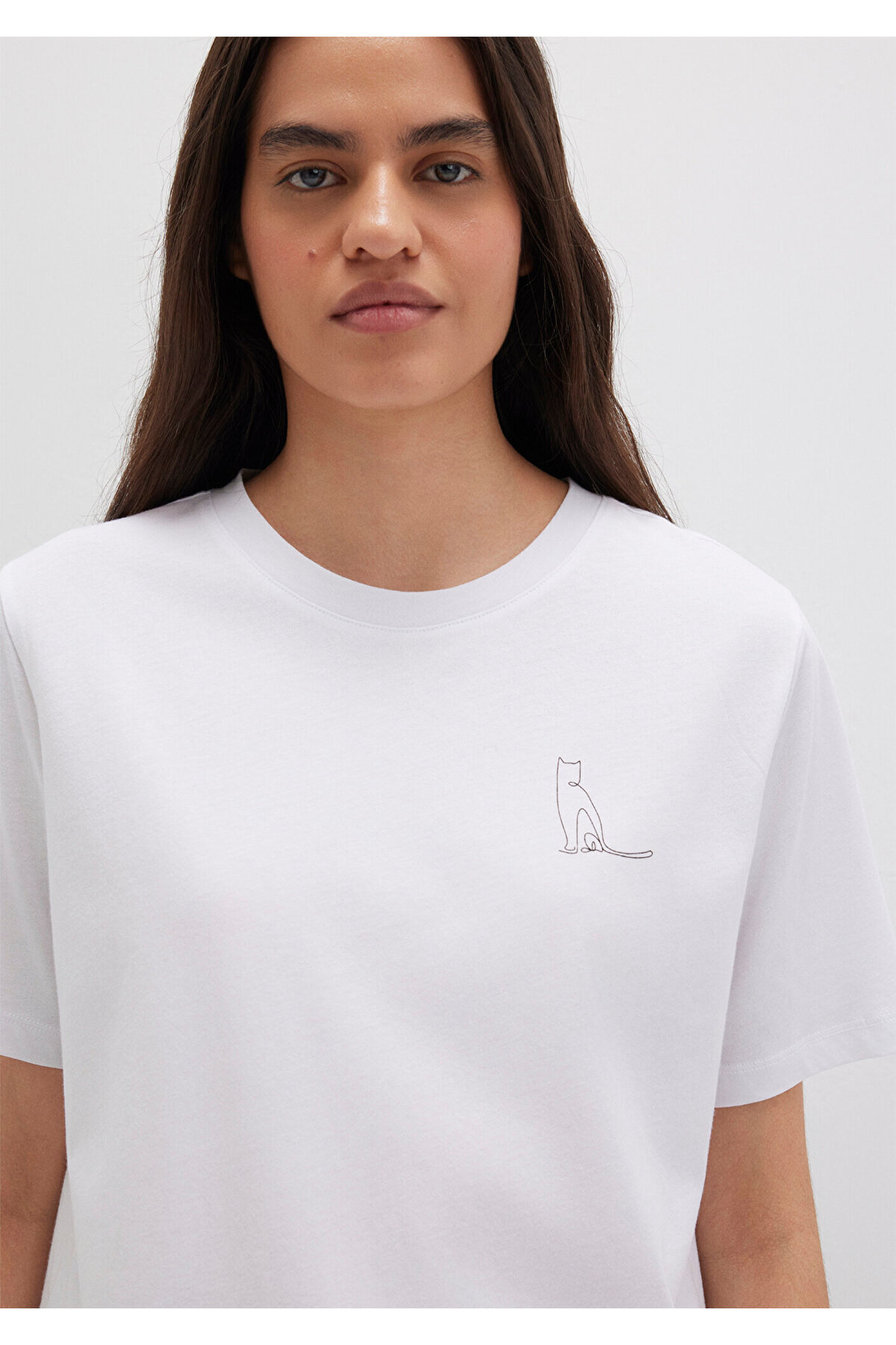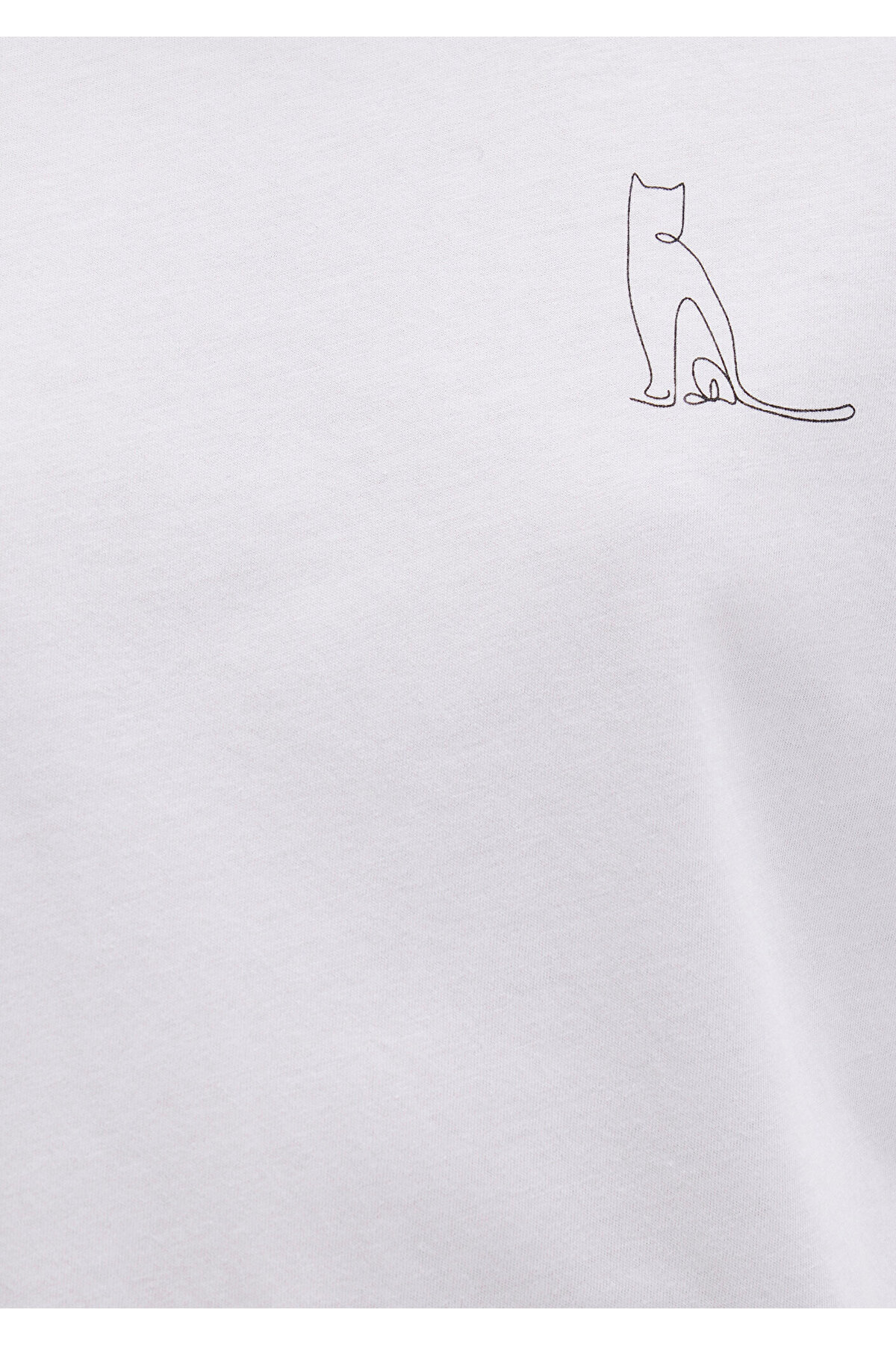 Kedi Baskılı Beyaz Tişört Regular Fit / Normal Kesim 1612298-620