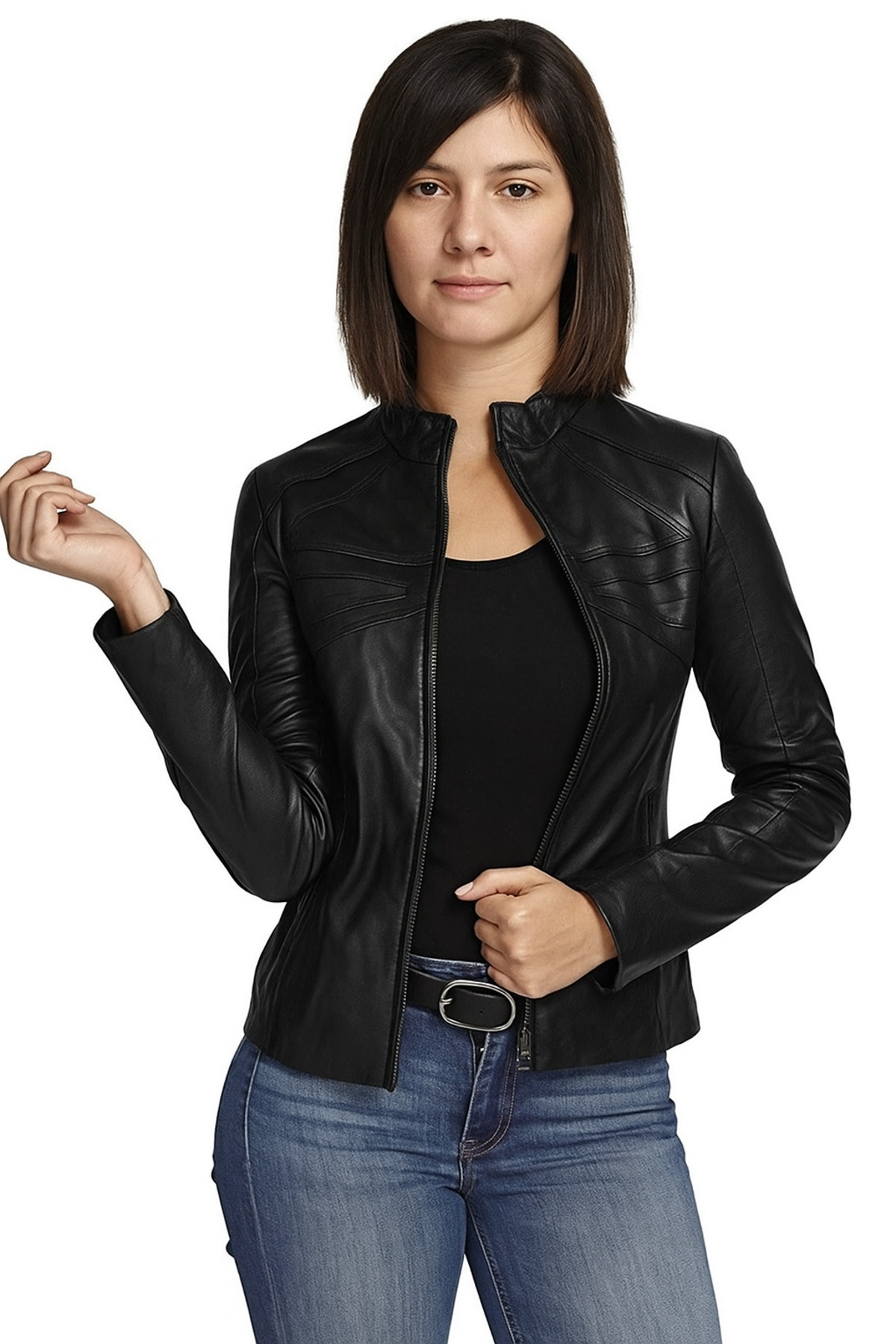 Kadın Siyah Deri Ceket 057