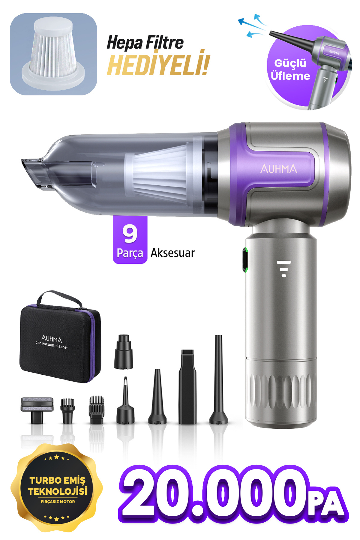AHV-09 Kablosuz Taşınabilir Araç İçi El Süpürgesi | 20000PA Güçlü Vakum | 4’ü 1 Arada Çok Amaç