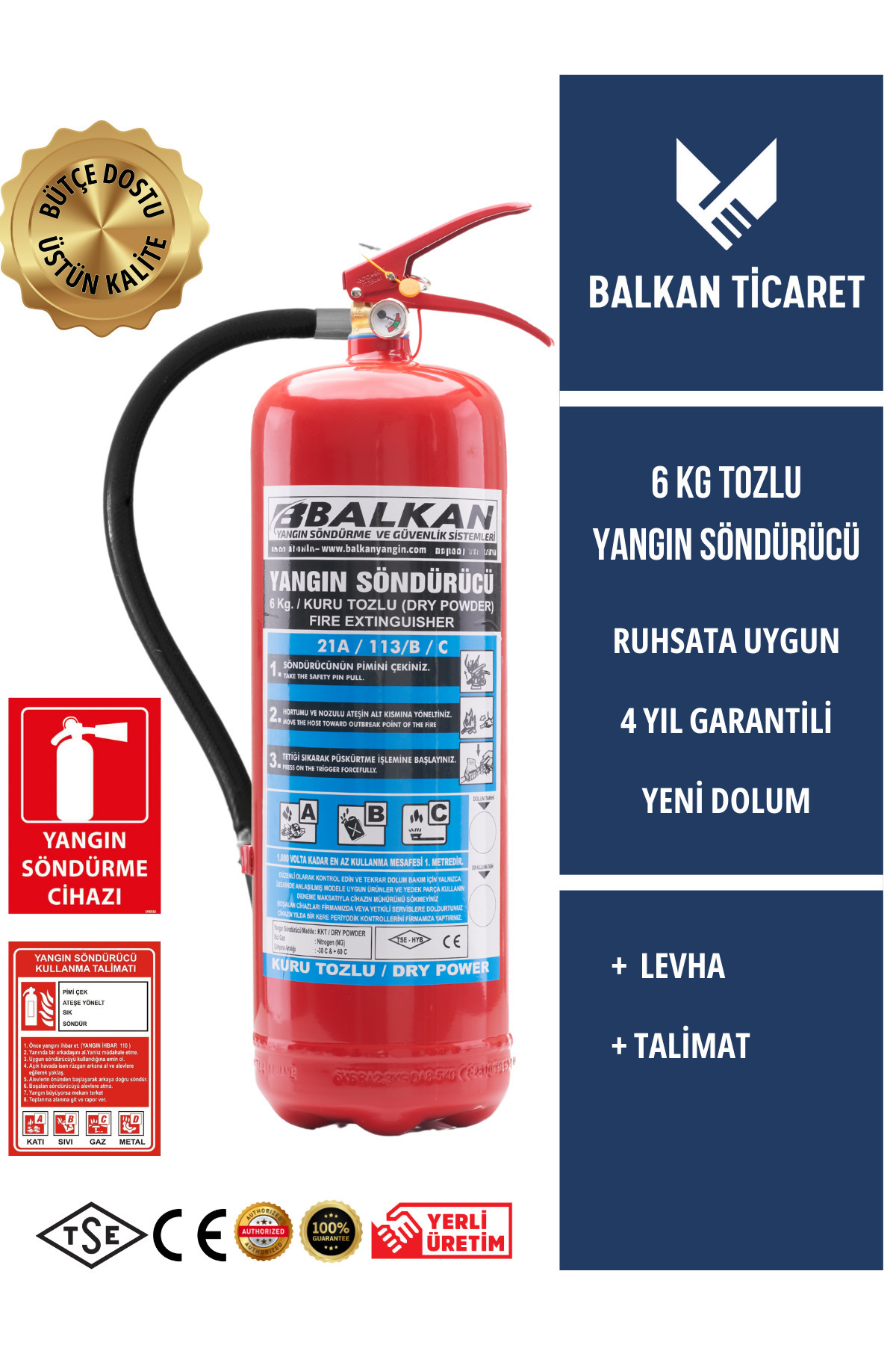 6 Kg Tozlu Yangın Tüpü + talimat etiketi ve uyarı levhası hediyeli - yangın anında güven verir