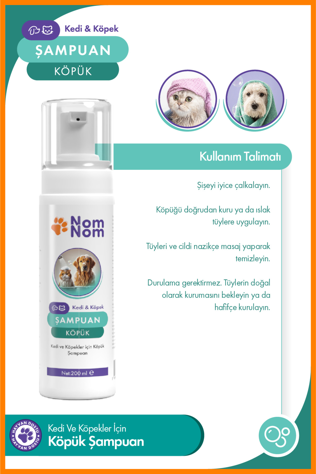 Kedi ve Köpek Köpük Şampuan, hem sizin için pratik bir kullanım kolaylığı hem de dostunuz için konforlu bir temizlik deneyimi sunar.