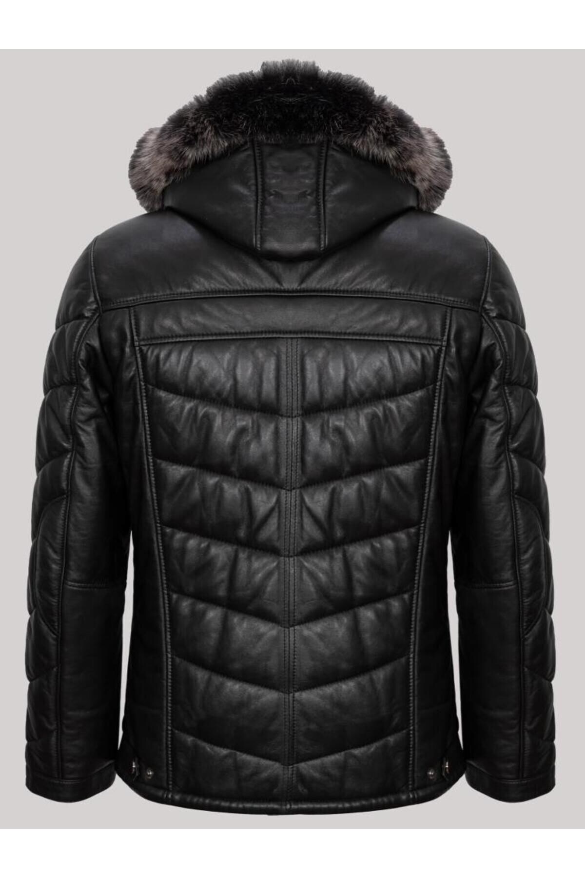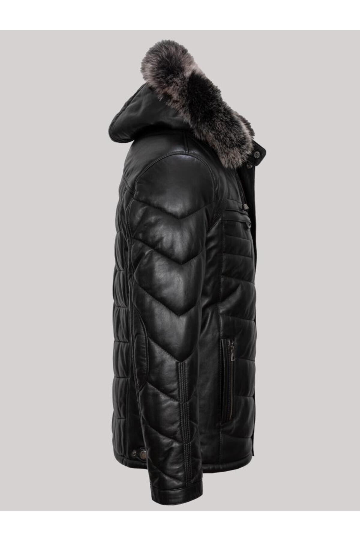 Hakiki Kuzu Derisi Kışlık Suya Dayanıklı Dört Cepli Şişme Ceket Siyah