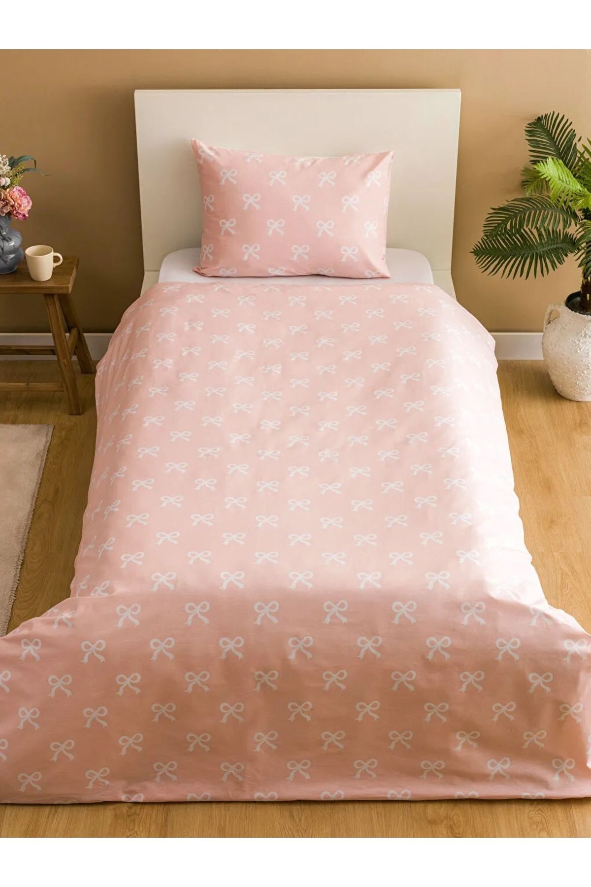 Pembe Fiyonk Desenli Tek Kişilik Nevresim Seti