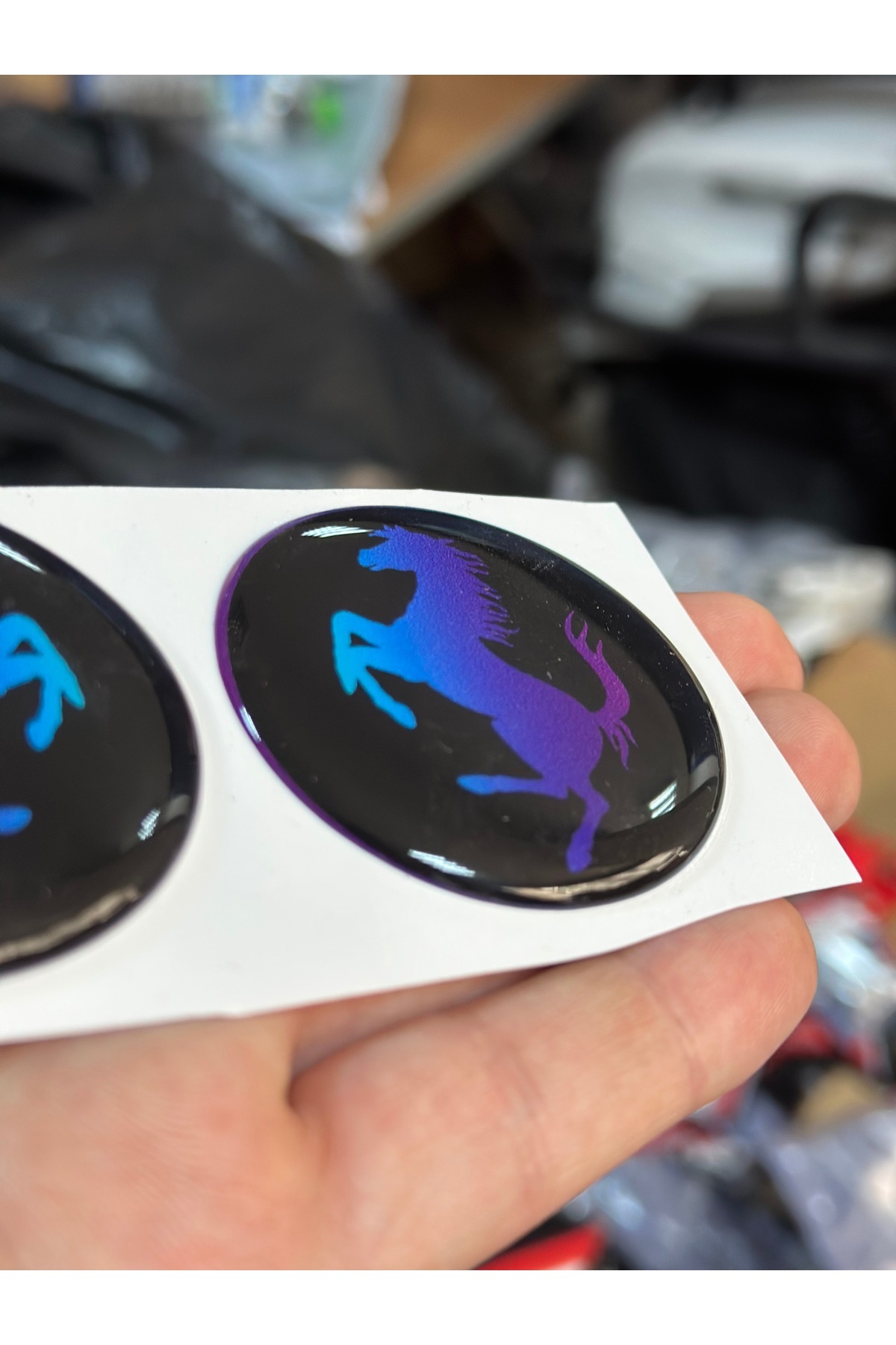 MOTOSİKLET REFLEKTÖR STİCKERI YUVARLAK FERRRARİİ ATI ETİKETİ / MAVİ SİYAH