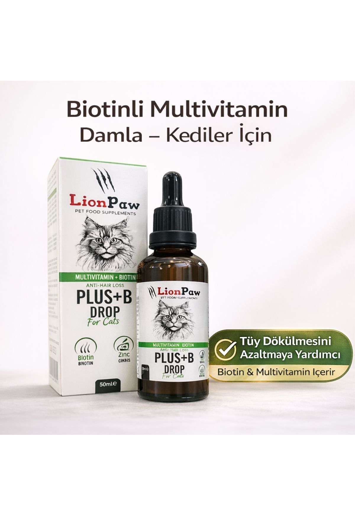 🐱 Lion Paw Kediler İçin Tüy Sağlığı Destekleyici Multivitamin Damla – 50 ml Kedinizde aşırı tüy dökülmesi, mat tüy görünümü ve zayıf tüy yapısı mı var? Lion Paw Multivitamin Damla, biotin destekli özel formülüyle kedinizin tüy ve cilt sağlığını içeriden destekler.