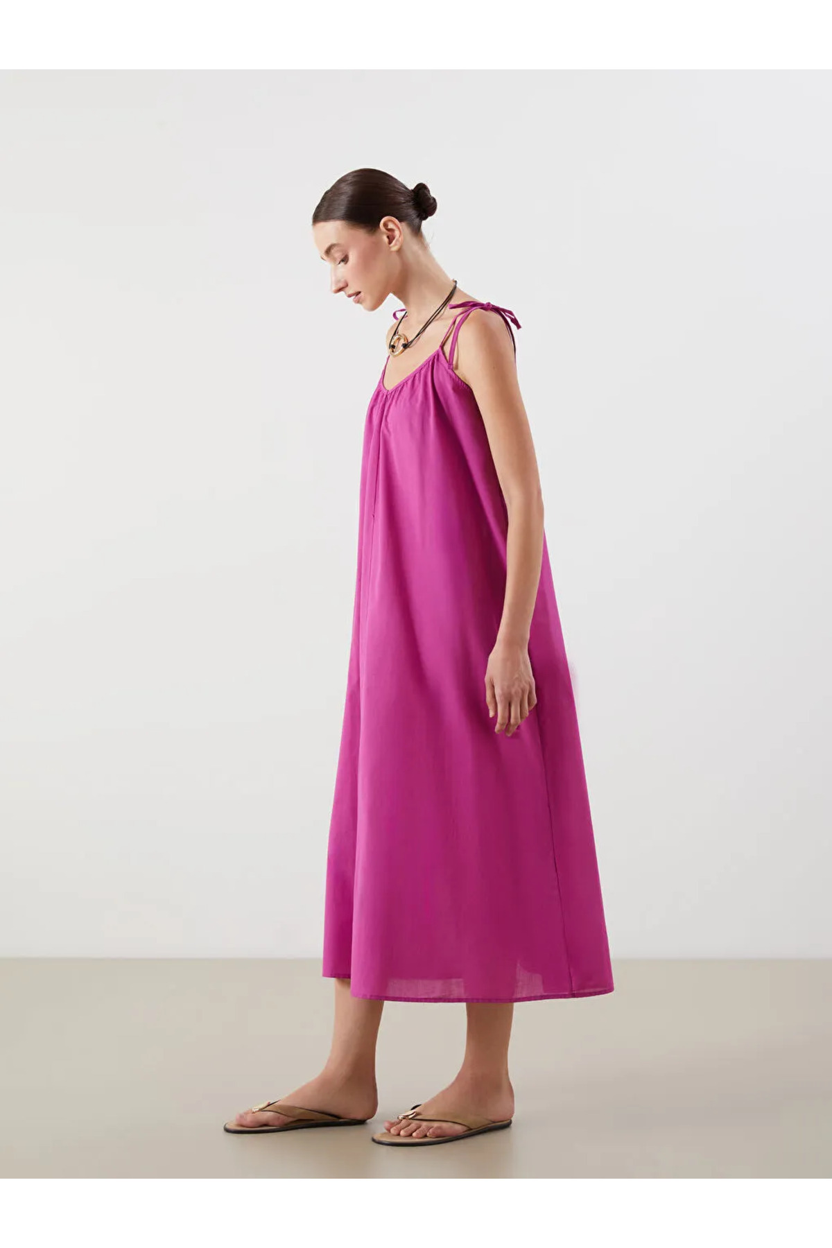 LCWAIKIKI Classic Fuşya V Yaka Askılı Elbise
