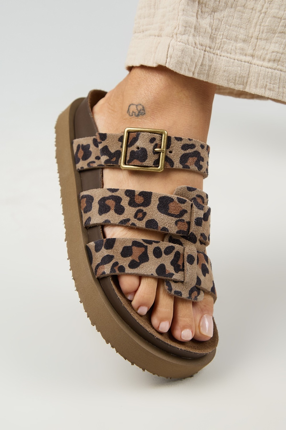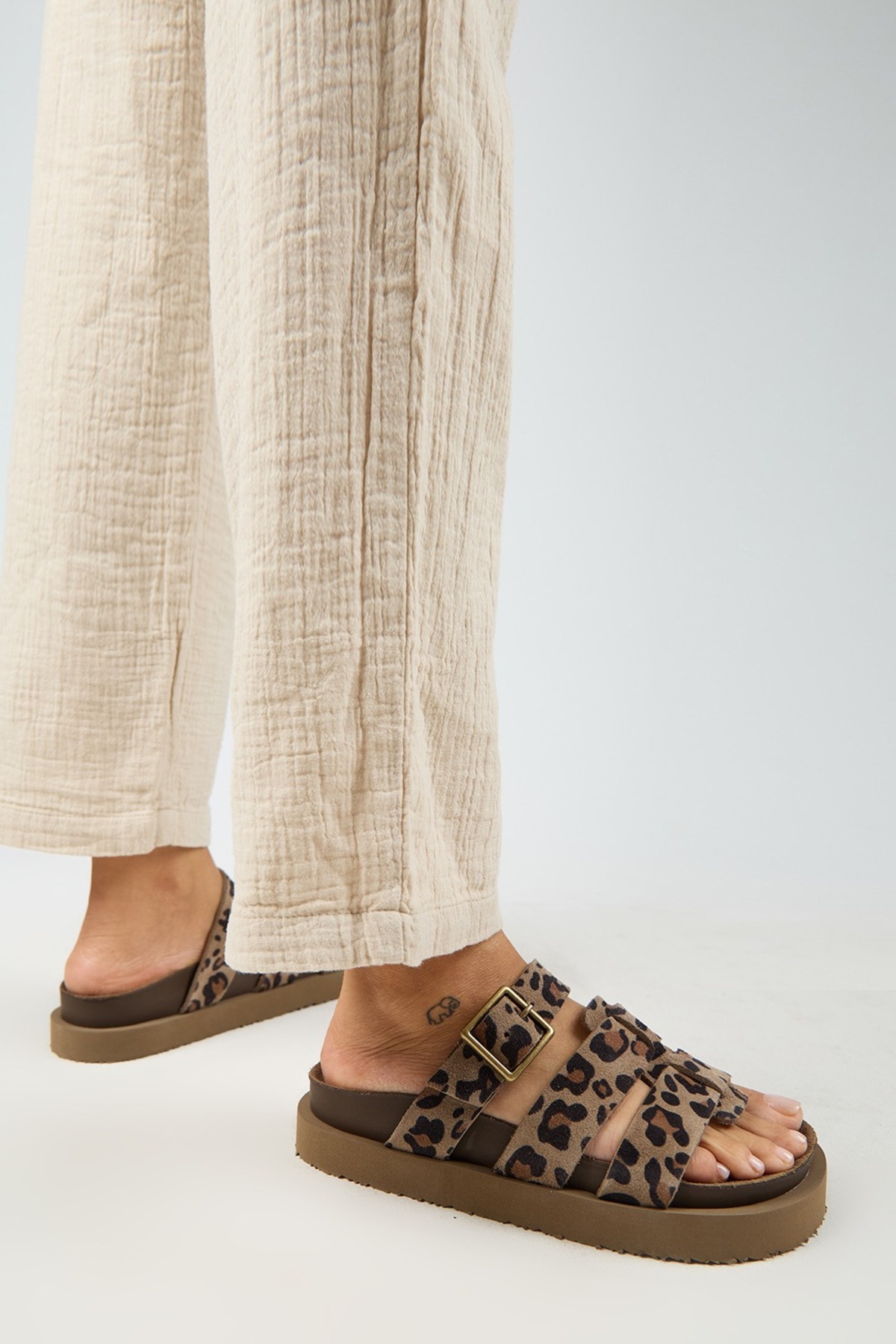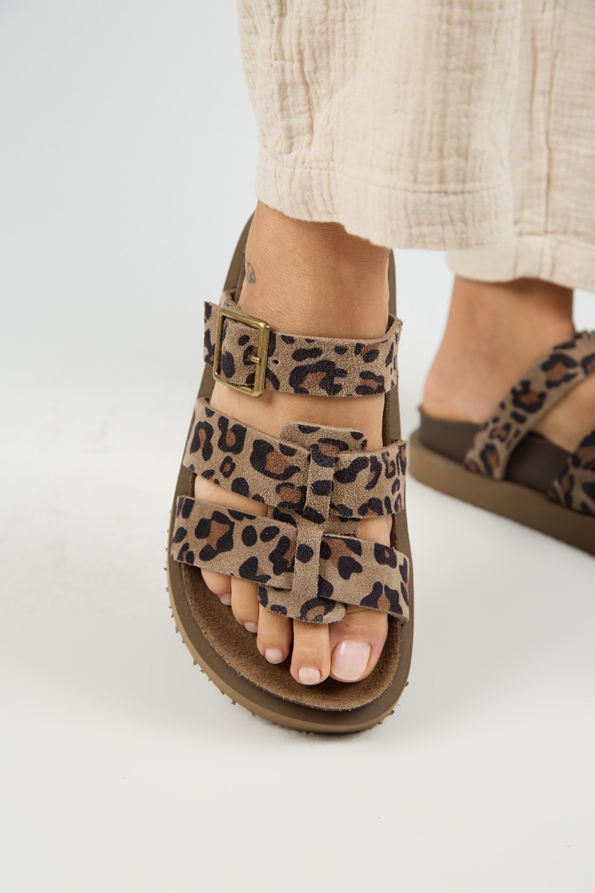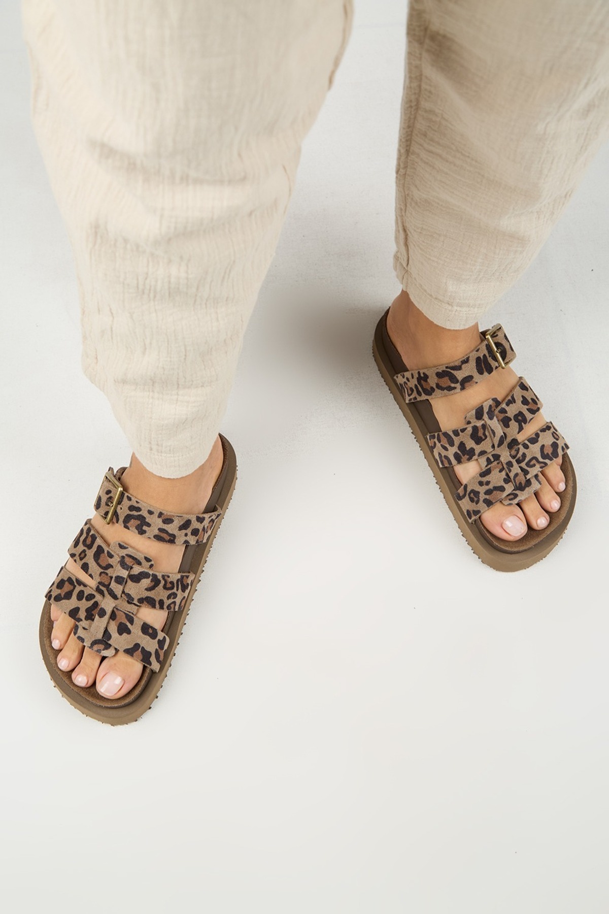 Luno Platform Deri Kadın Terlik Leopar
