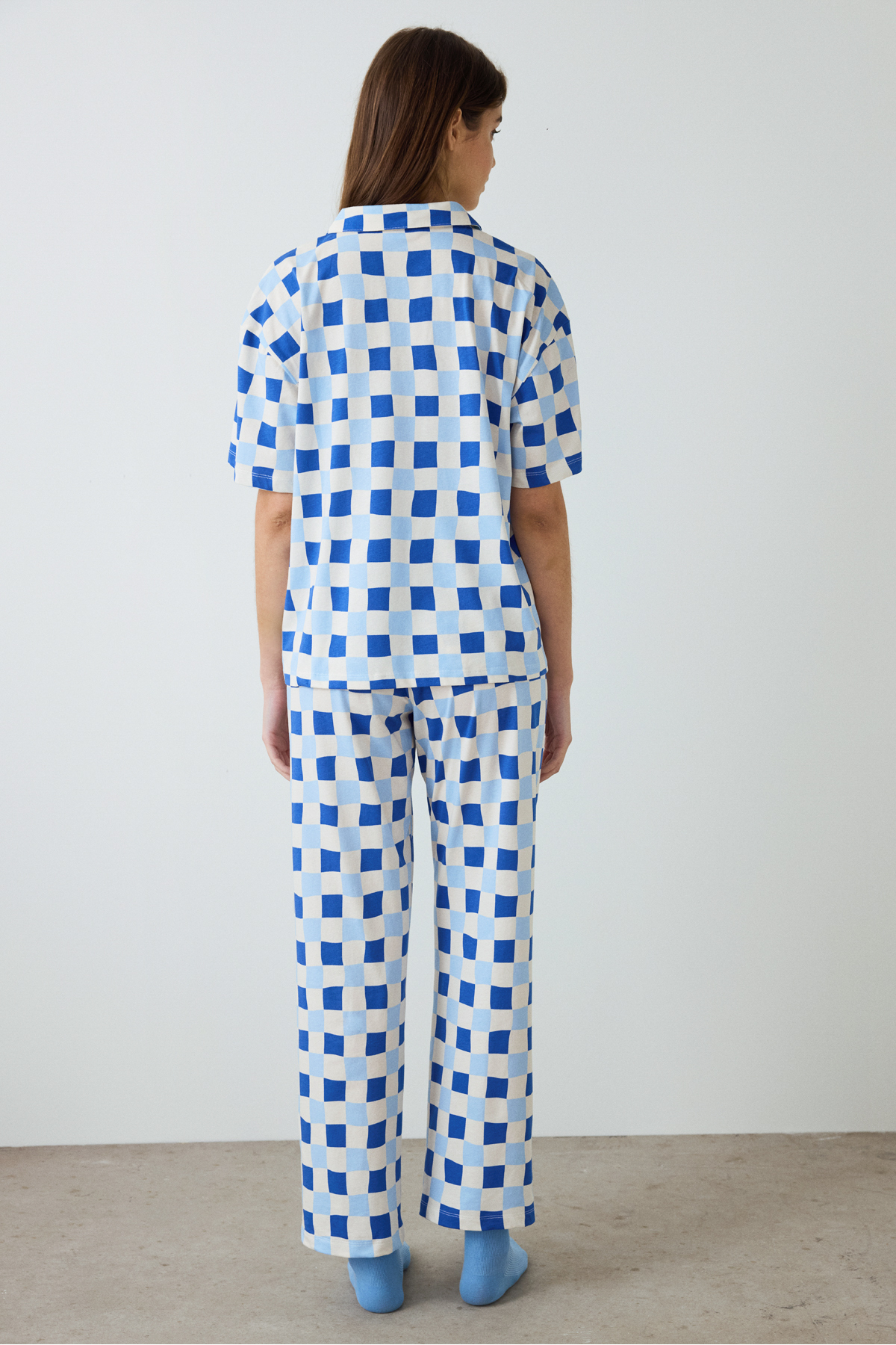 Rhea Gingham Ss Gömlek Pantolon Set, evde rahatlığın ve şıklığın mükemmel birleşimini sunar.