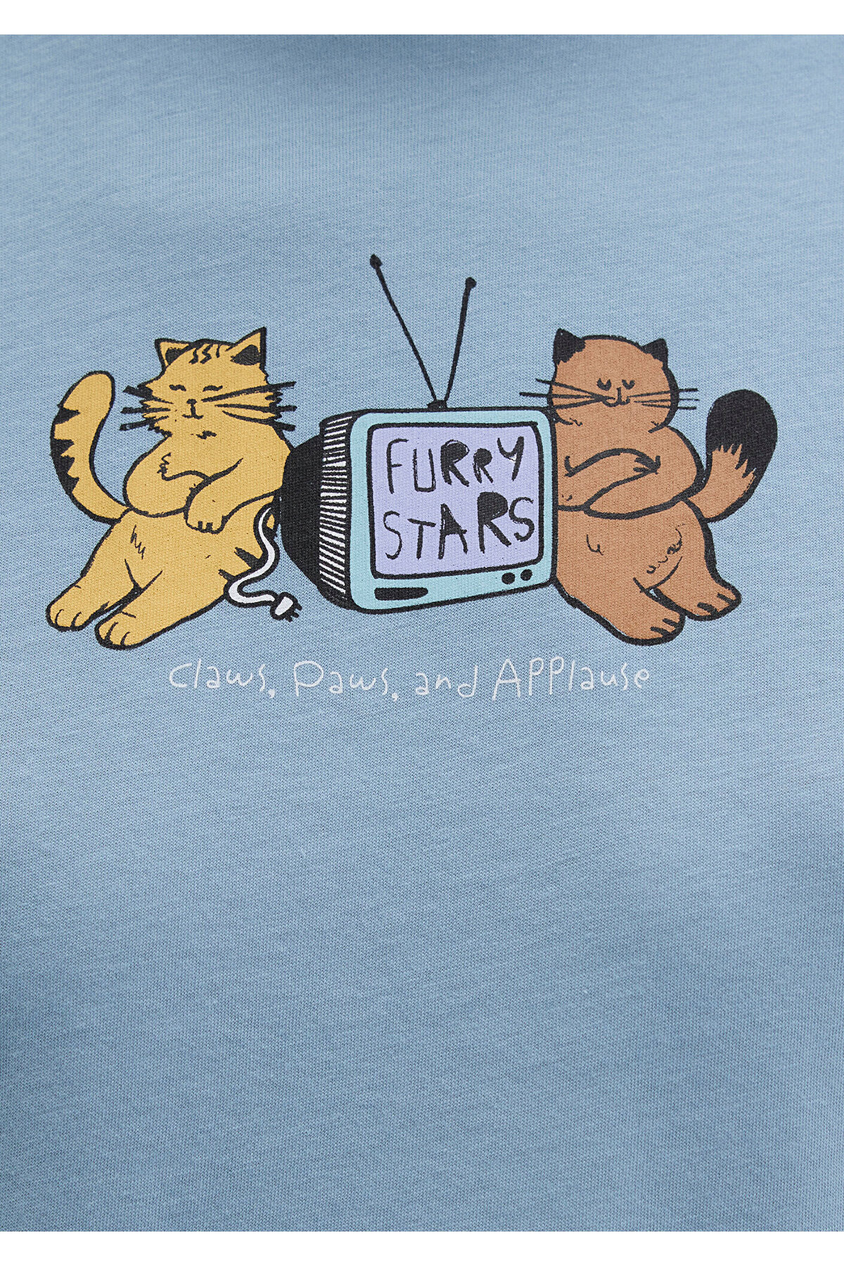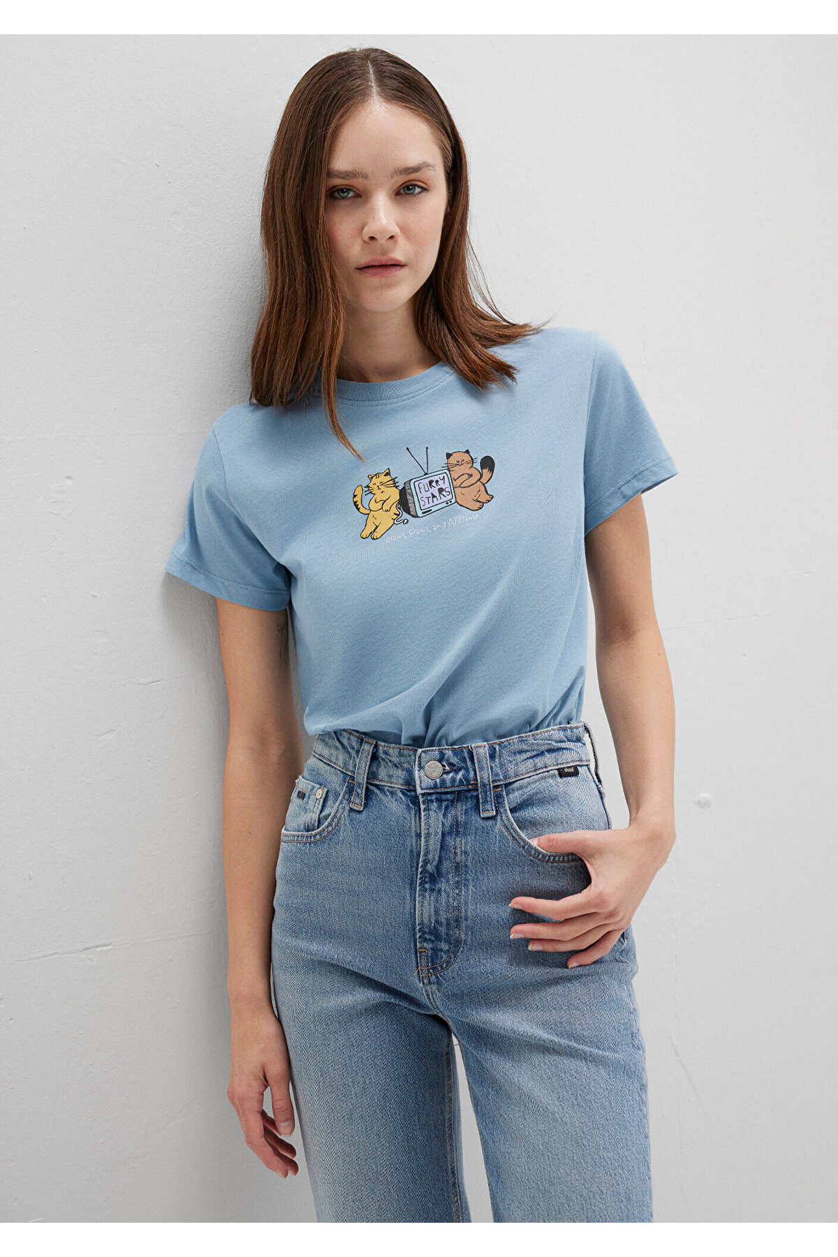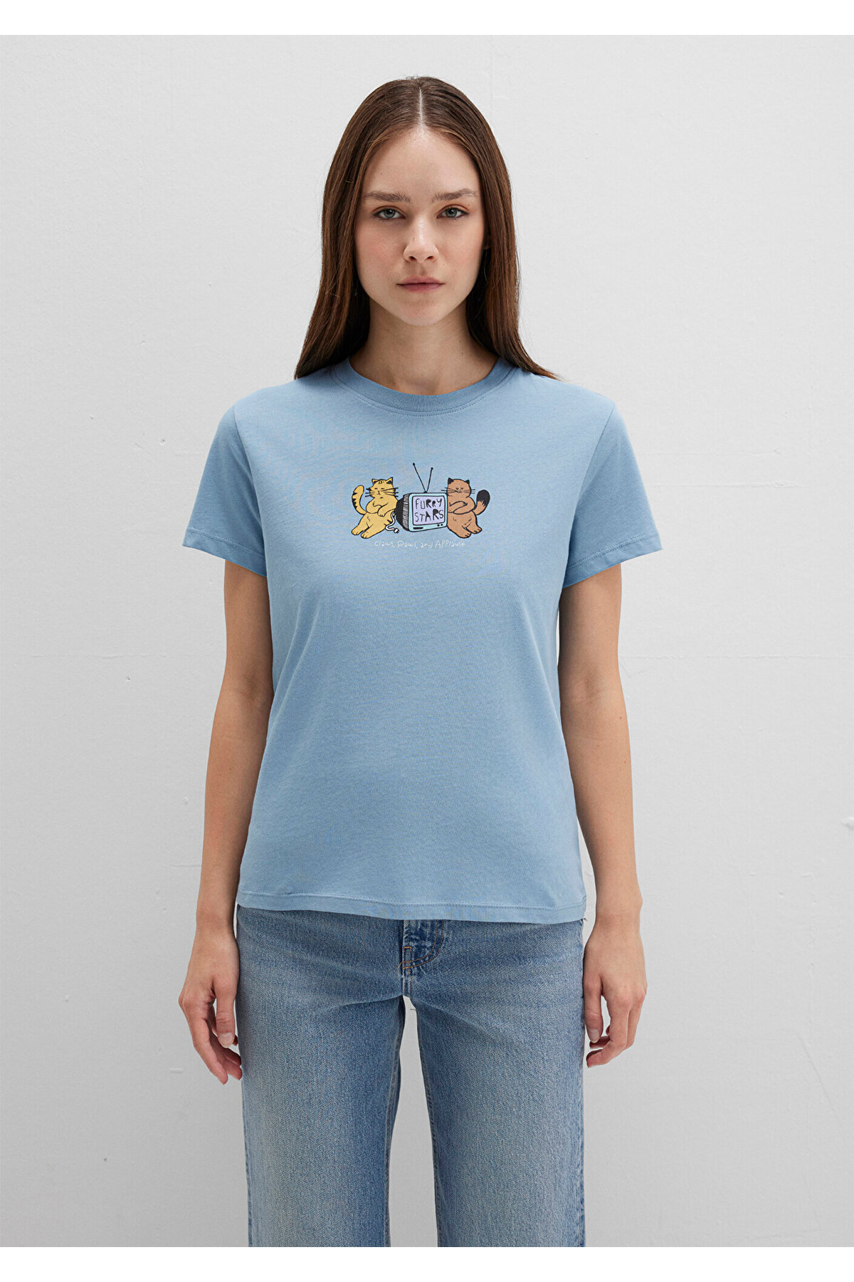 Mavi nin kadın koleksiyonundan Kedi Baskılı Mavi Tişört.