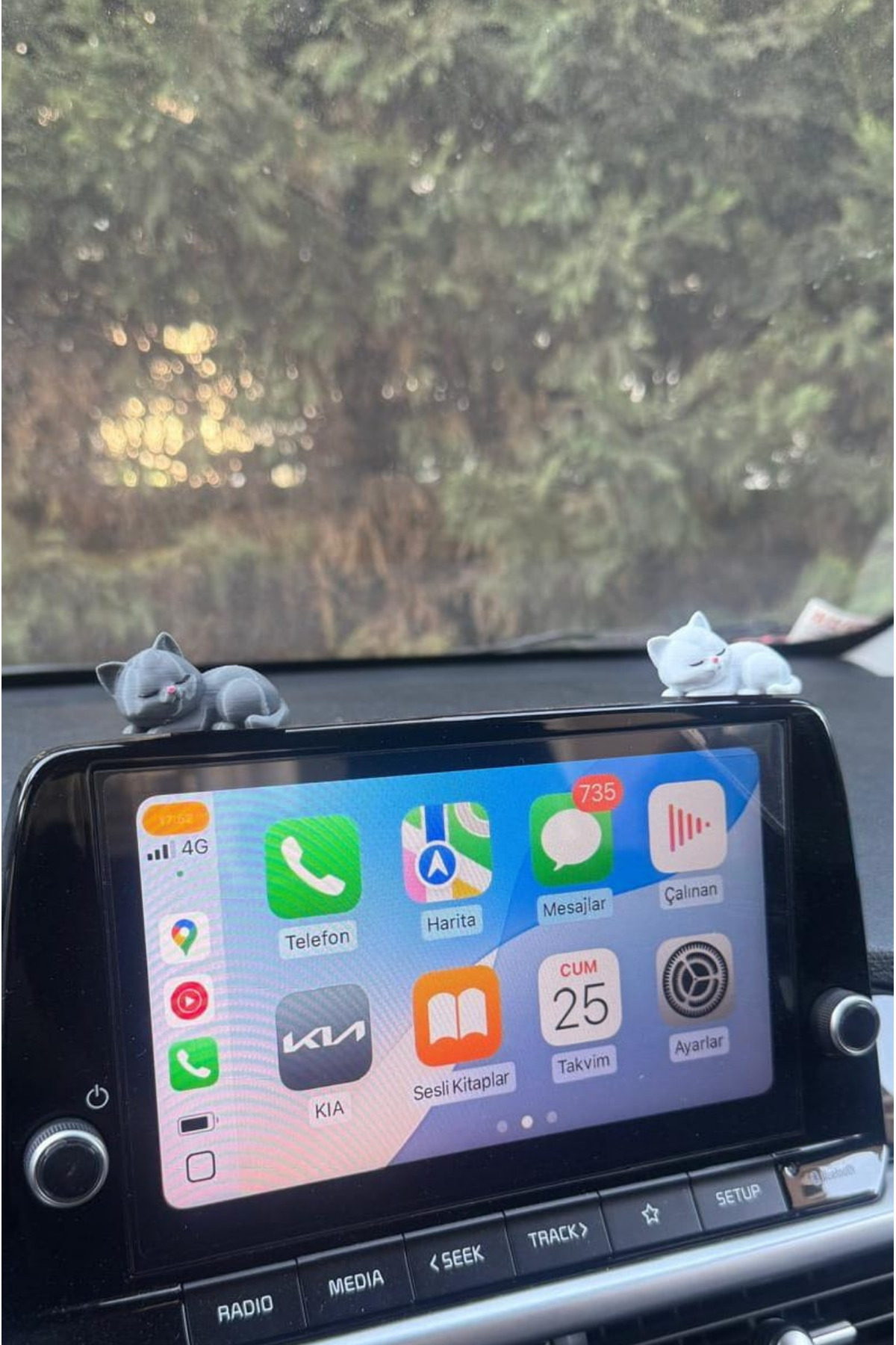 2 Adet Sert Plastik Gri-Beyaz Sevimli Uyuyan Kedi Araba Süsü, Araba Dekoru, Çalışma Masası Dekoru
