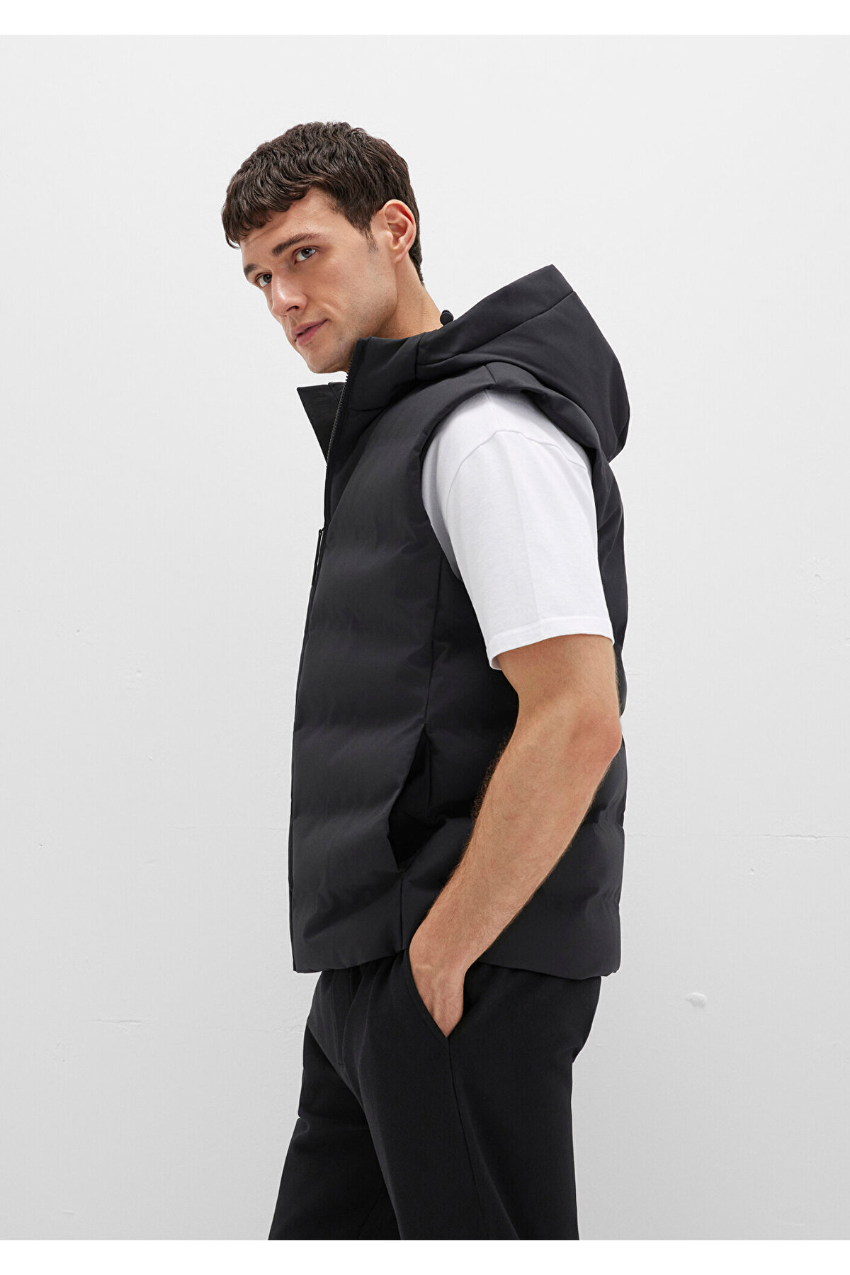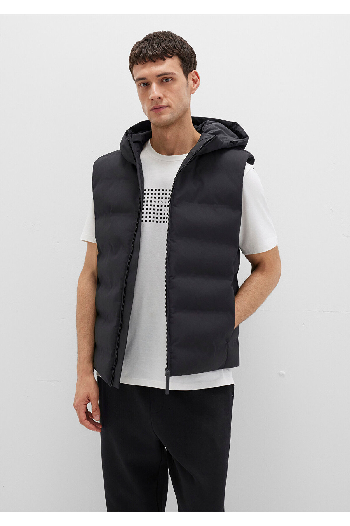 Mavi Black koleksiyonundan Kapüşonlu Siyah Şişme Yelek.