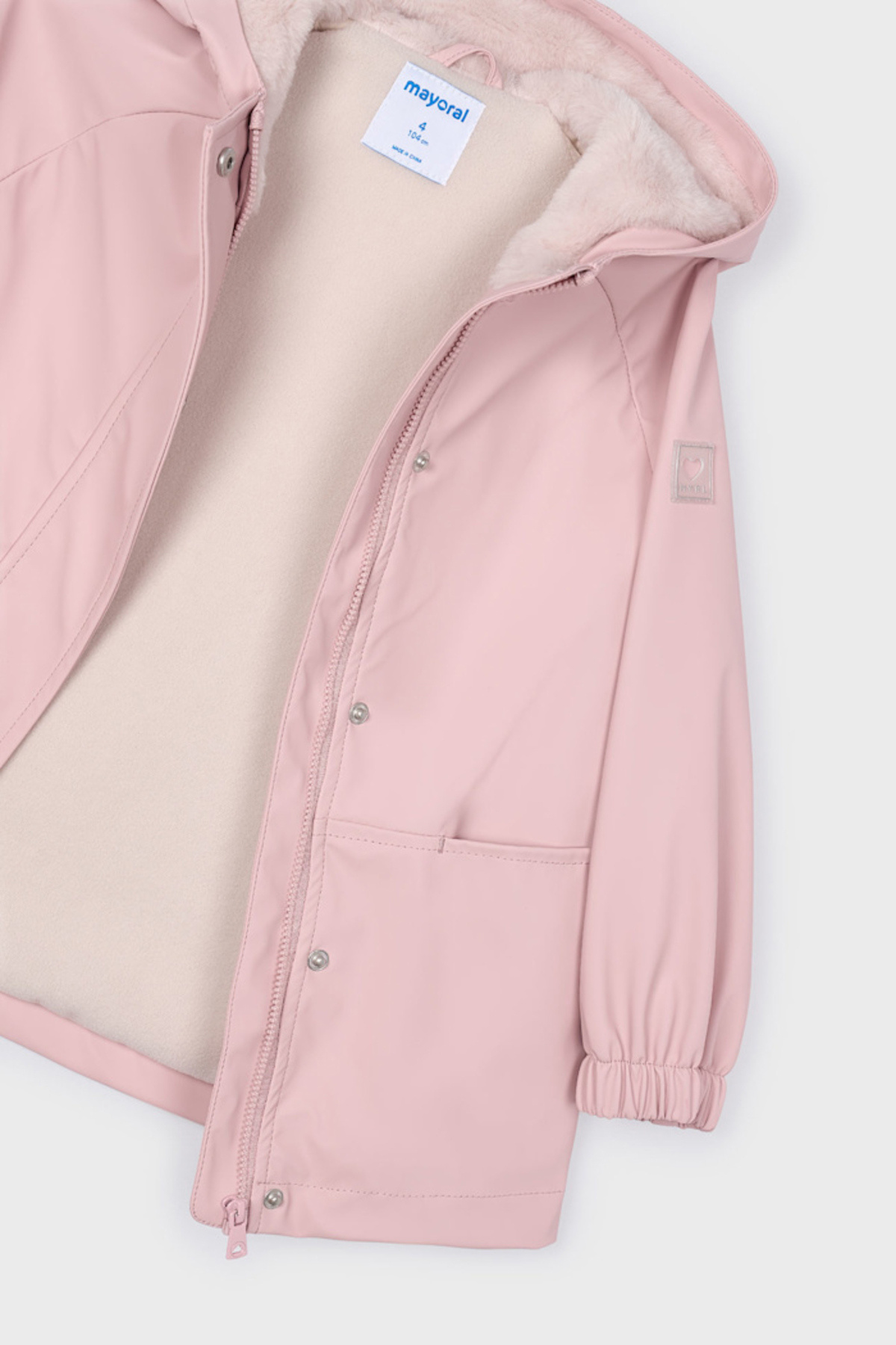 Kız Çocuk Kapüşonlu İçi Pelüş Kaban - Pudra Pembe