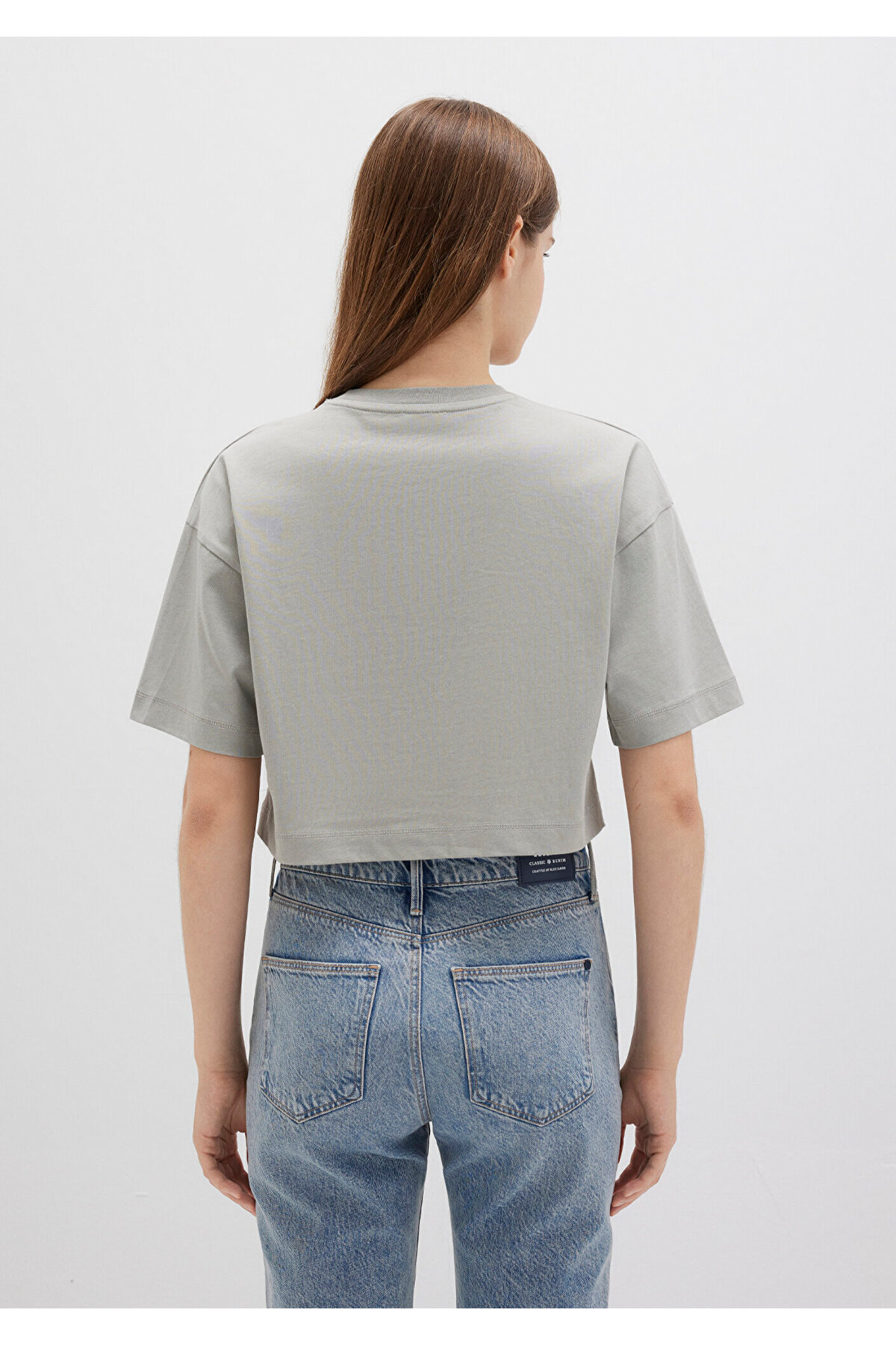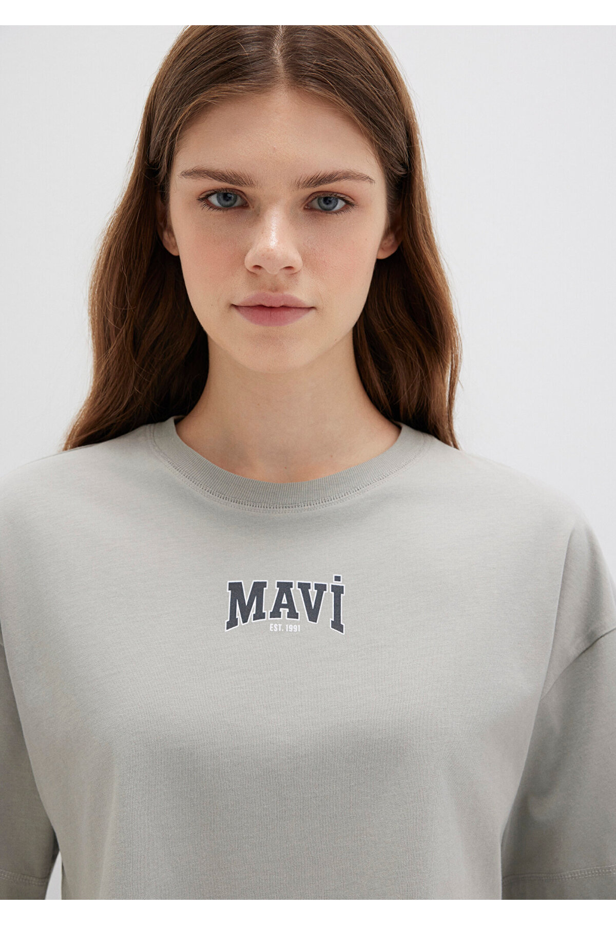Mavi nin kadın koleksiyonundan Mavi Logo Baskılı Gri Crop Tişört.