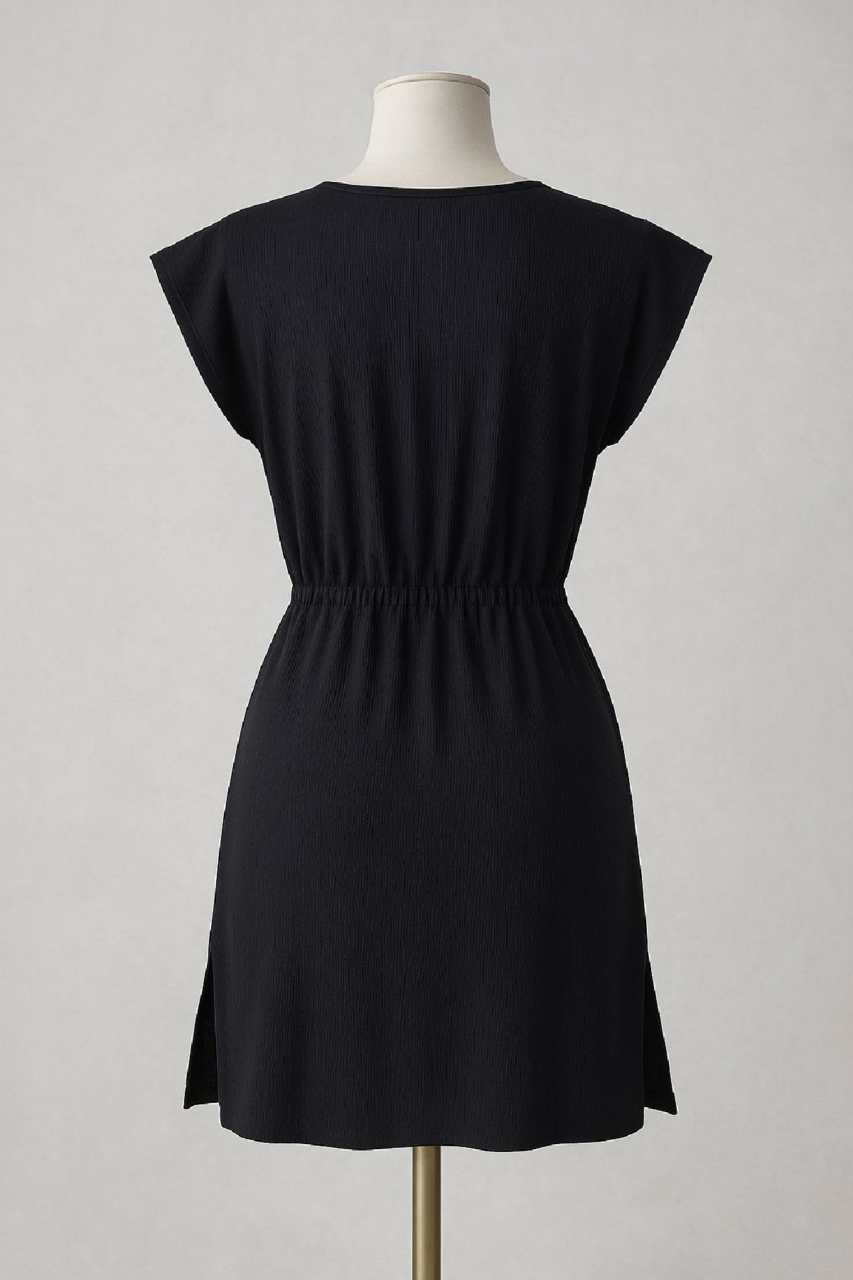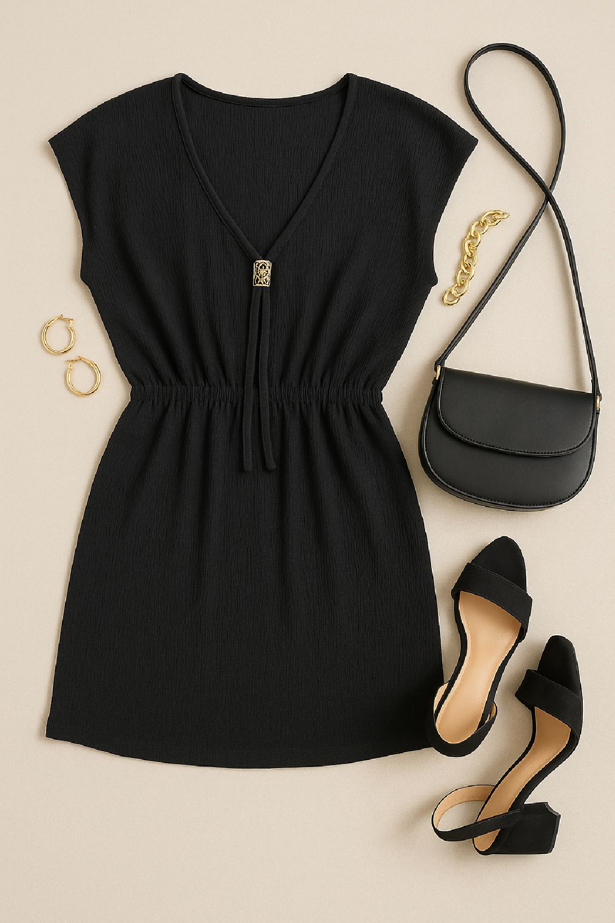 Kadın Siyah Yanları Yırtmaçlı Tokalı V Yaka Mini Plaj Elbisesi, hem plajda hem de şehir hayatında şıklığınızı tamamlayacak zamansız bir parçadır.