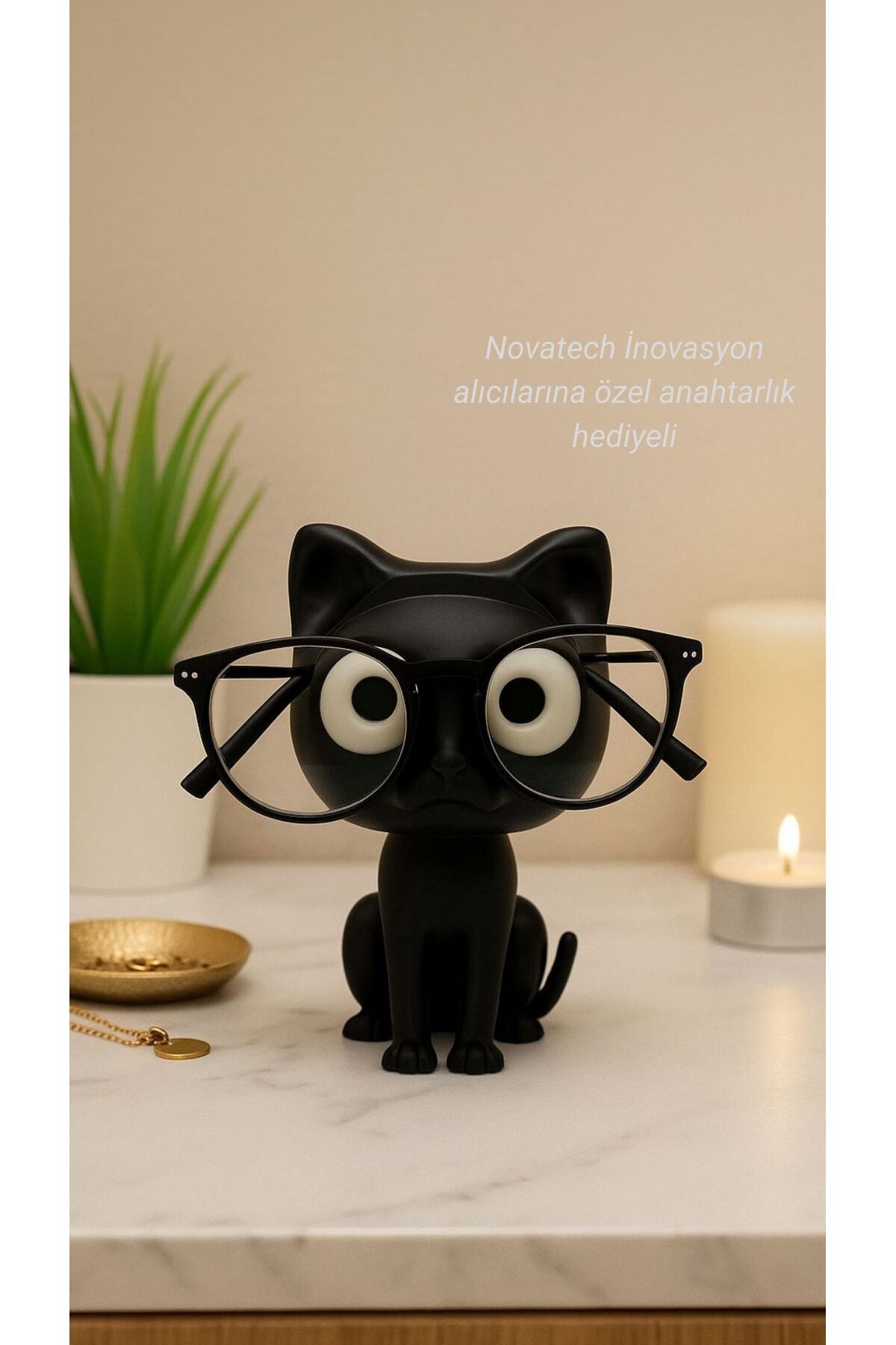 Gözlüğünüzü nereye koyduğunuzu sık sık öunutuyor musunuz? İşte size hem şık hem de eğlenceli bir çözüm! Siyah kedi tasarımlı gözlük standı, gözlüklerinizi güvenli ve düzenli bir şekilde saklarken bulunduğu ortama da karakter katar.