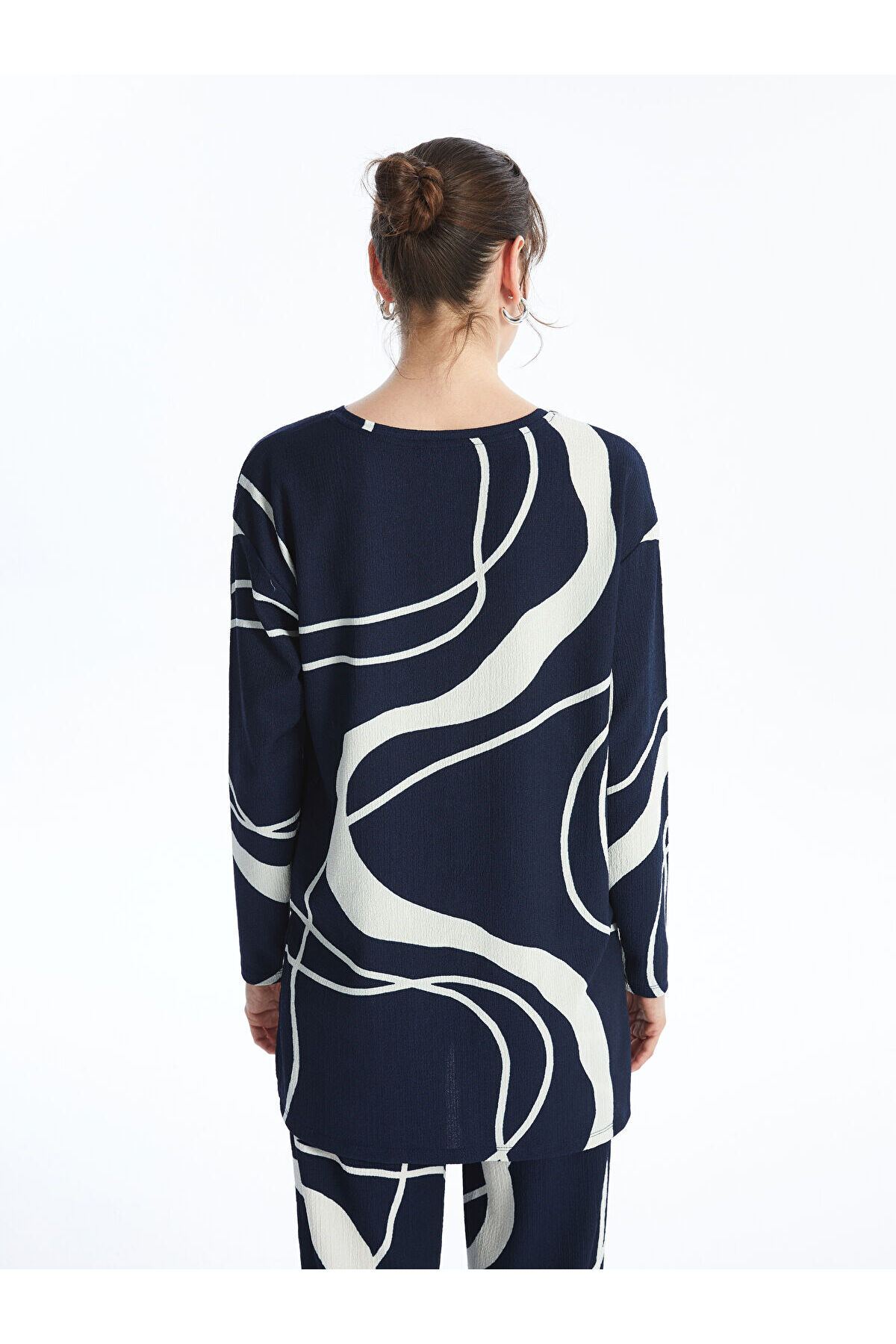 Bisiklet Yaka Desenli Uzun Kollu Kadın Tunik