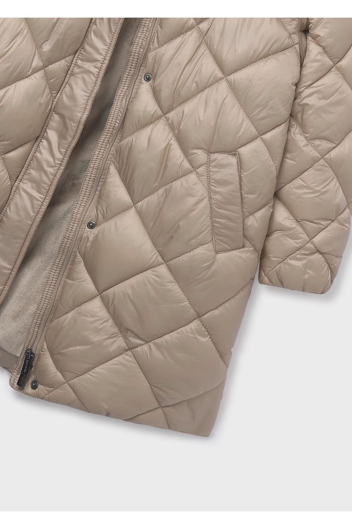 Kız Çocuk Dolgulu Yumuşak Tüylü Astarlı Uzun Kışlık Mont 7432 Krem