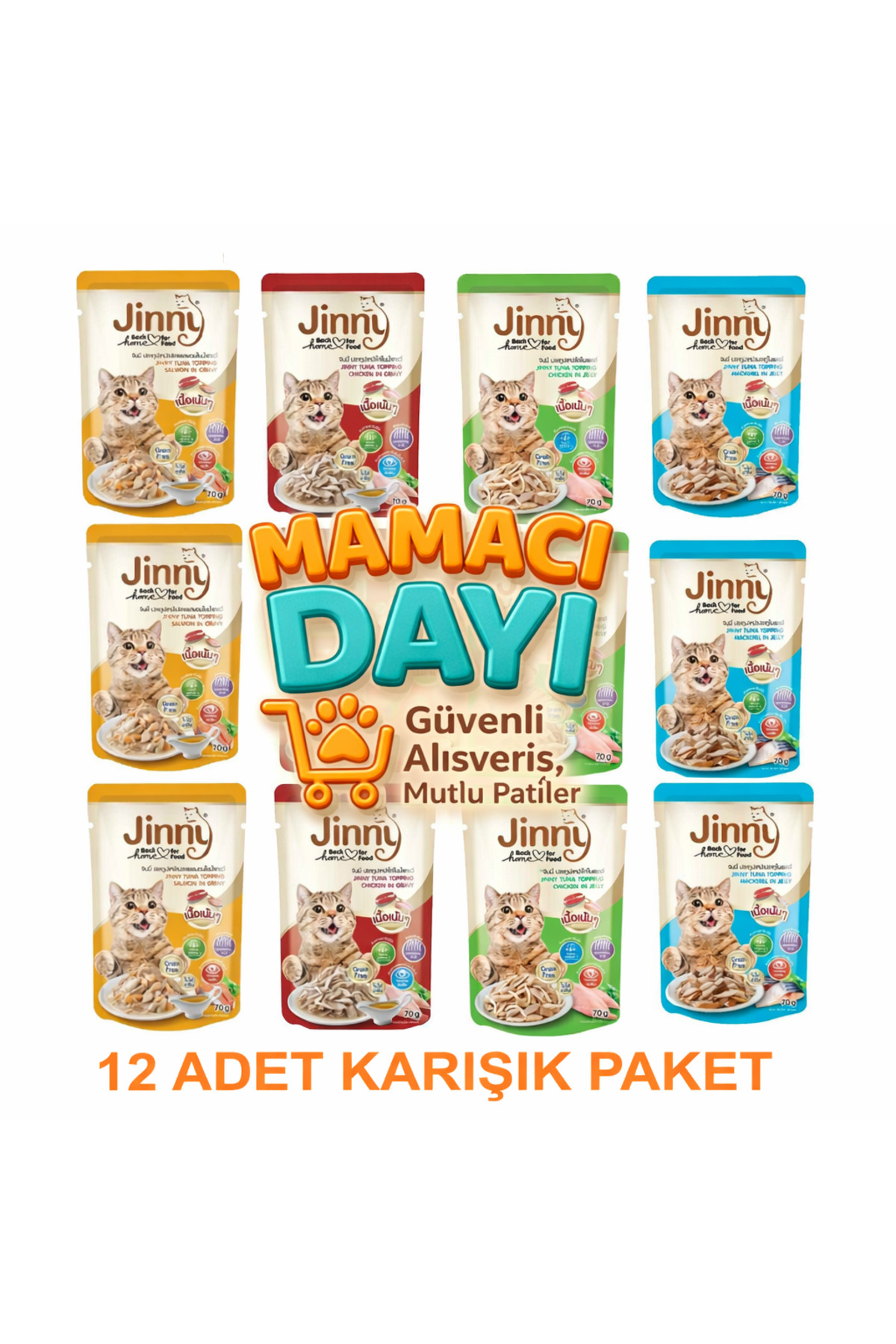 Karışık 12 Adet Kedi Yaş Mama Pouch