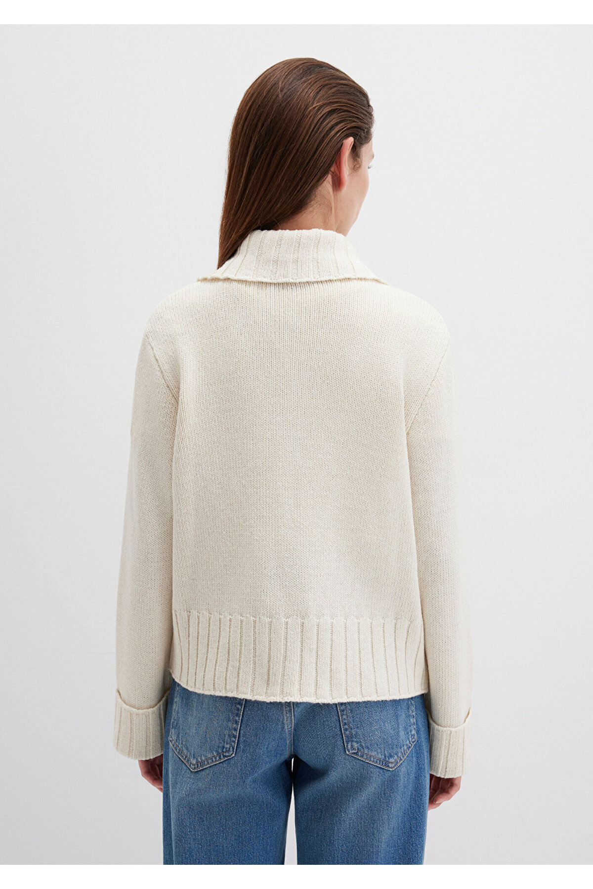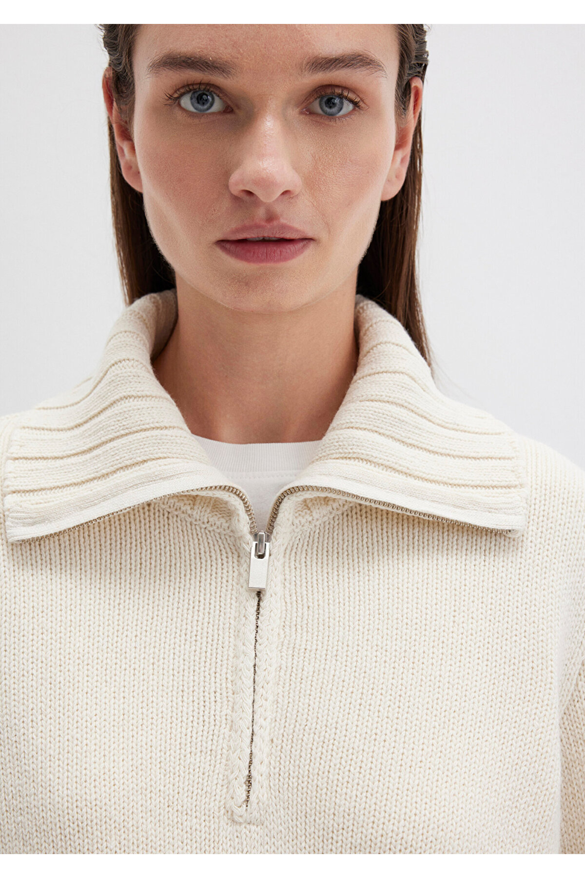 Mavi nin kadın koleksiyonundan Yün Karışımlı Yarı Fermuarlı Ekru Kazak.