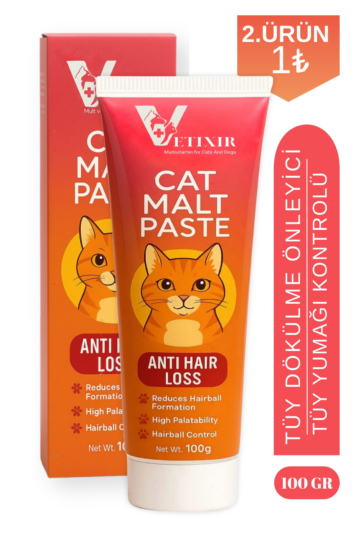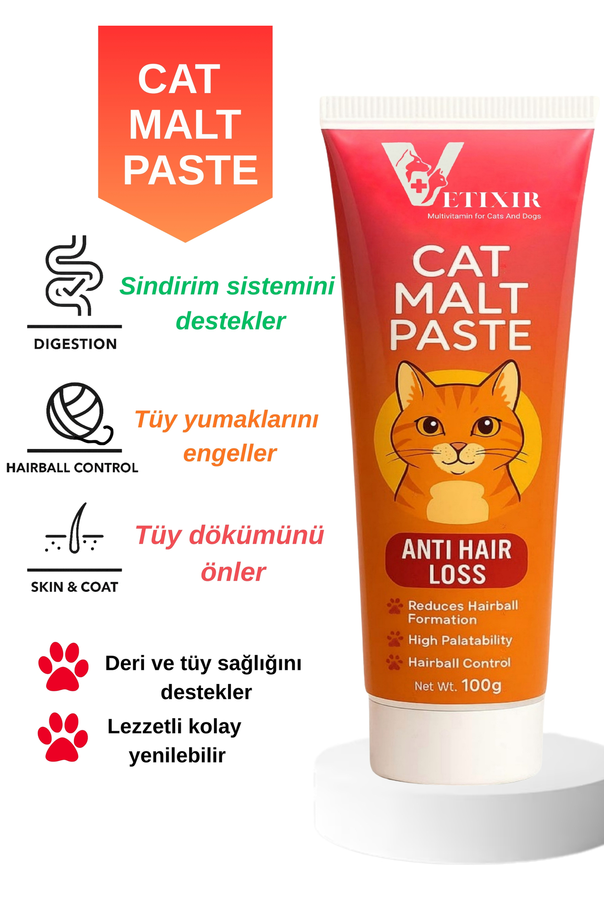 Tüy Dökülme Engelleyici Malt Paste, Tüy Yumağı Ve Kusma Önleyici Multivitamin Kedi Malt Macun 100 gr