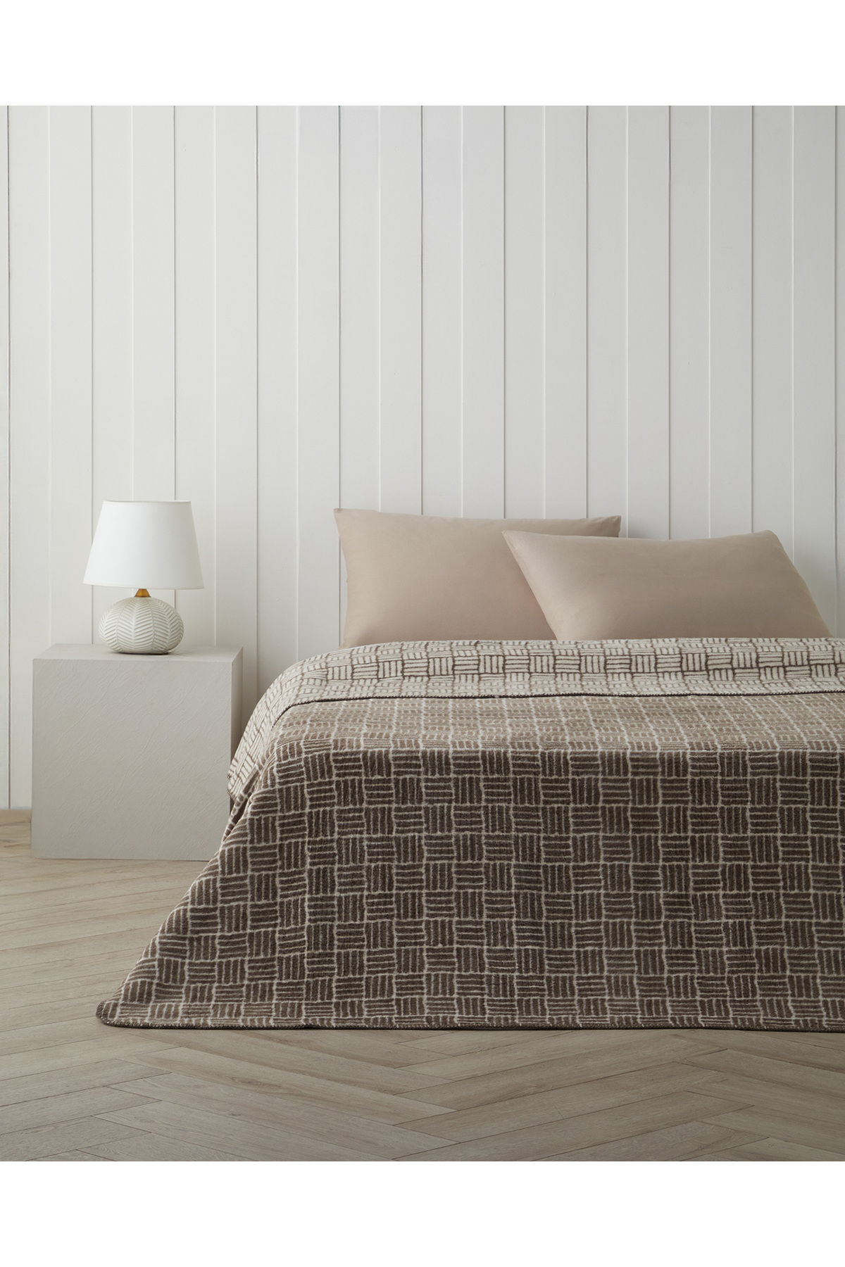 Woven Grid Pamuk Akrilik Tek Kişilik Battaniye 150x200 cm Kahverengi