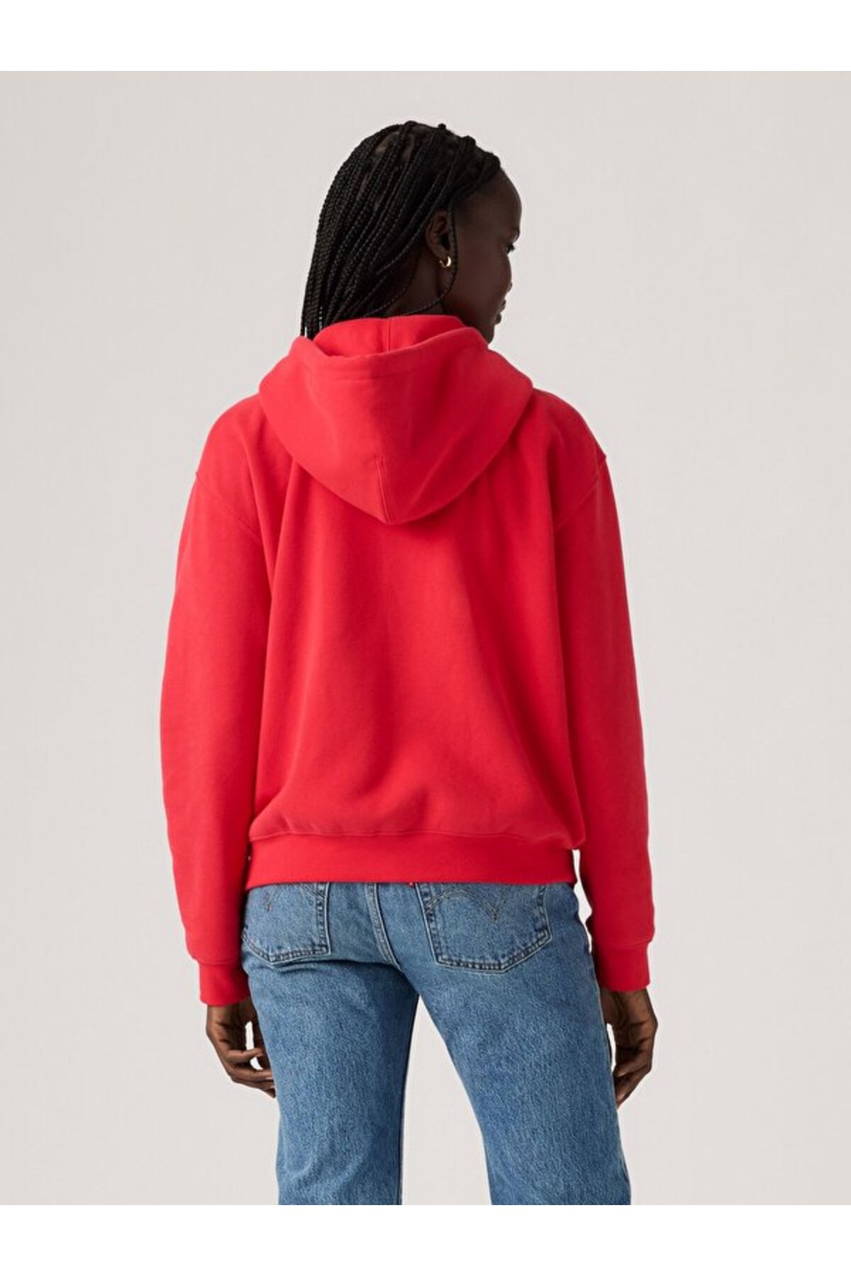 KADIN FERMUARLI KAPÜŞON YAKA KIRMIZI SWEATSHİRT 001U1-0002