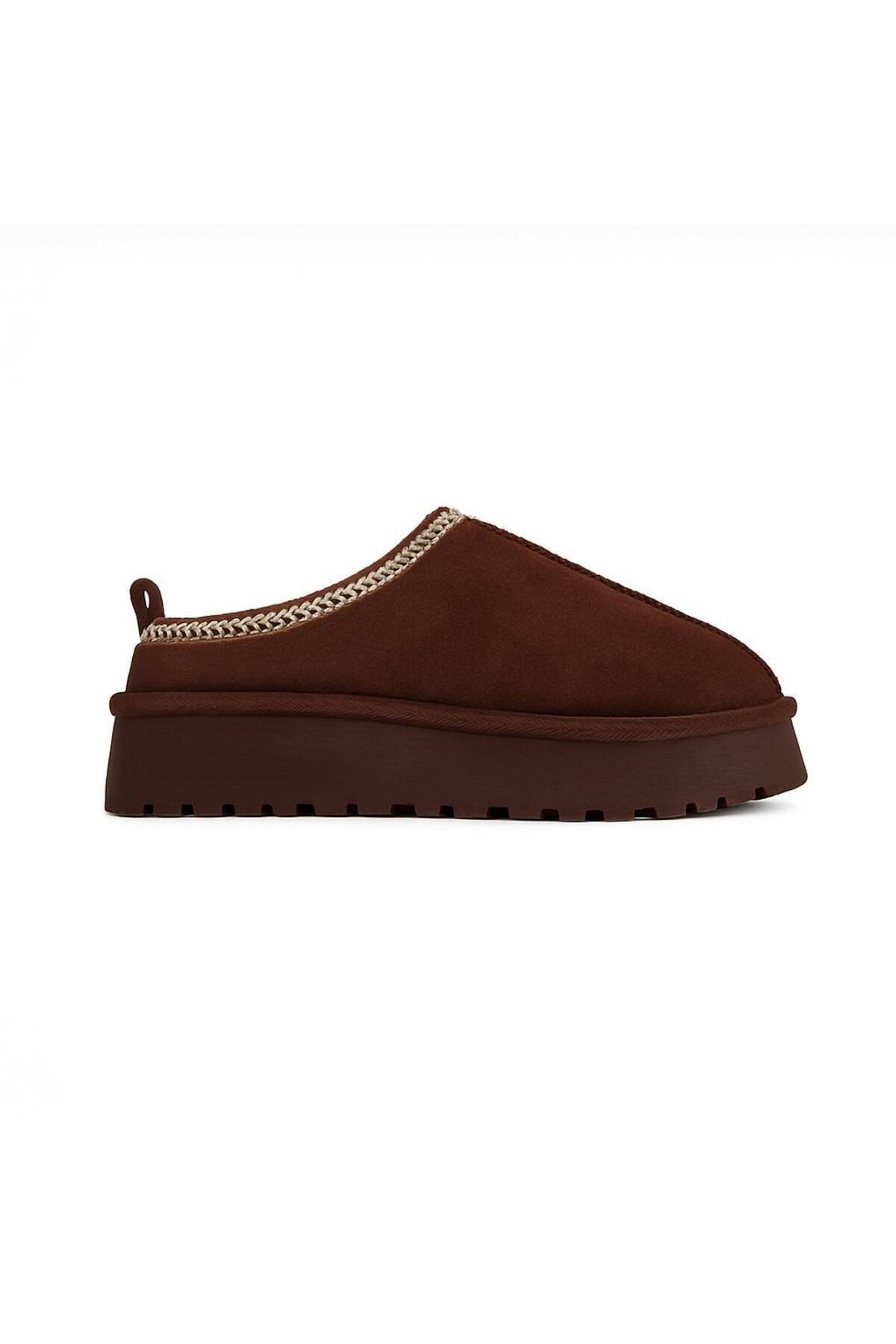 Tazz Classıc Platformlu Kahverengi Kürklü Süet Kadın Terlik
